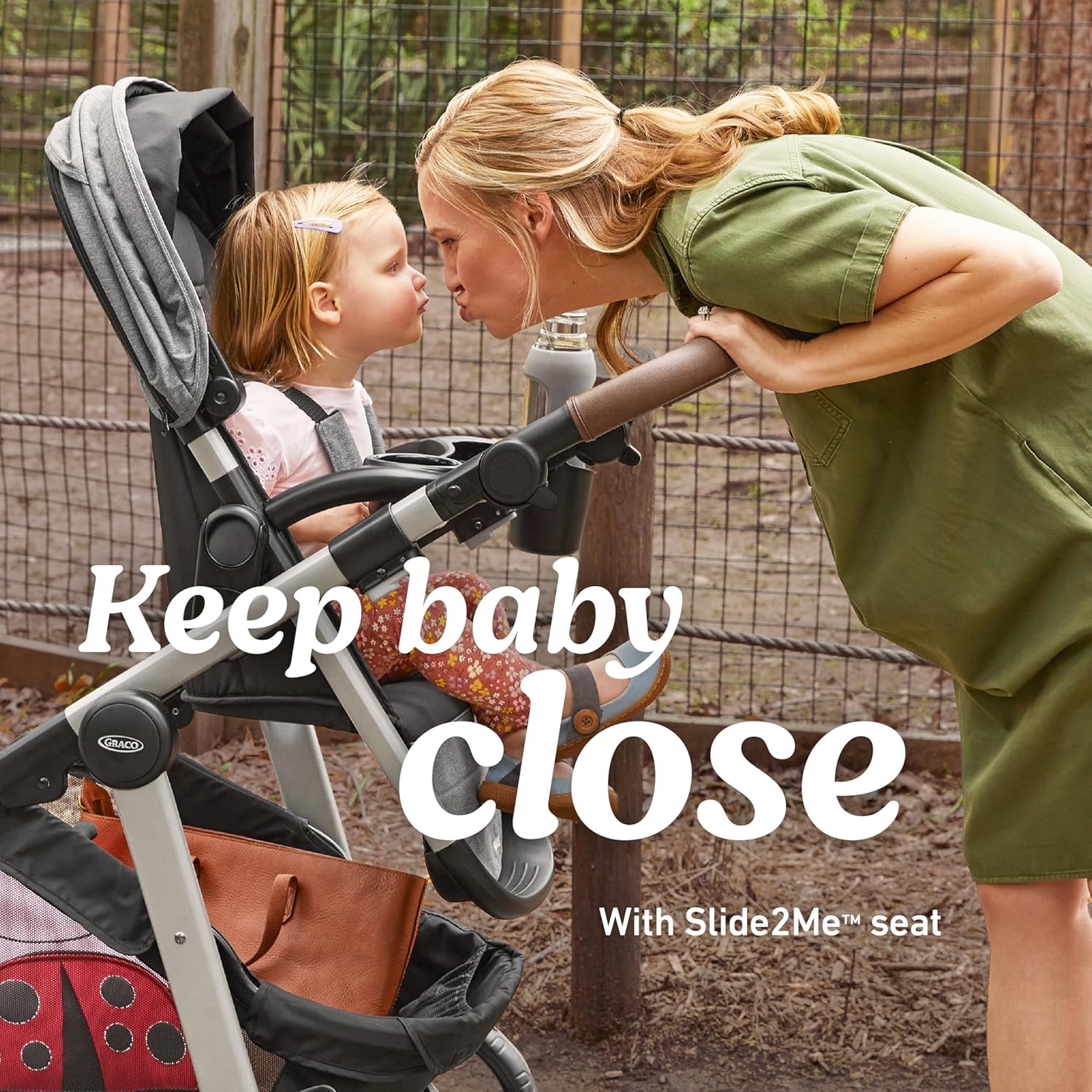 - Enjoy face-to-face smiles by raising the Slide2Me seat or infant car seat to one of 3 height positions to find just the right ride