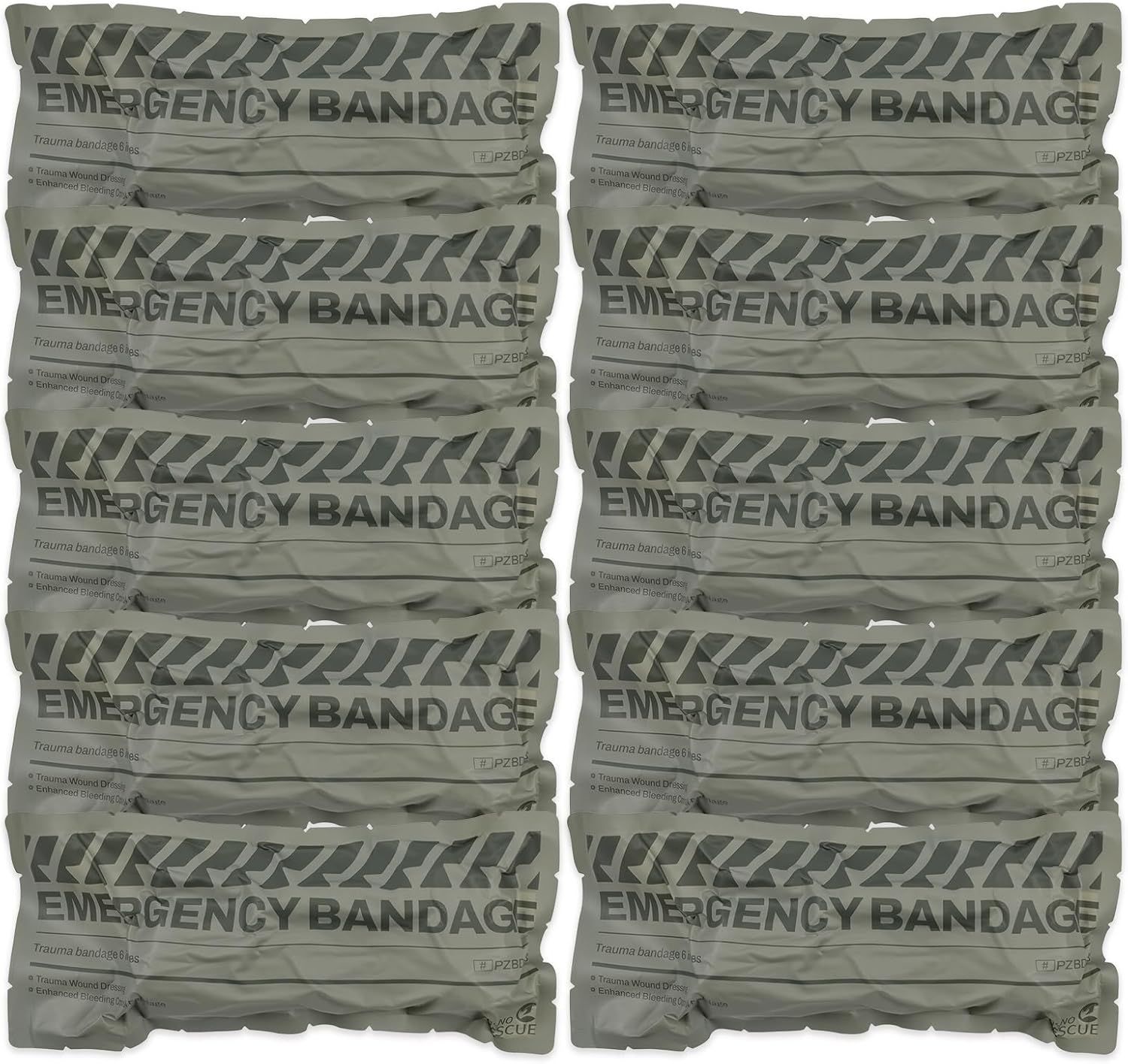 RHINO RESCUE 6" Emergency Compression Bandage Strile Trauma Wound Dressing Israeli First Aid Kit IFAK, 10 Count