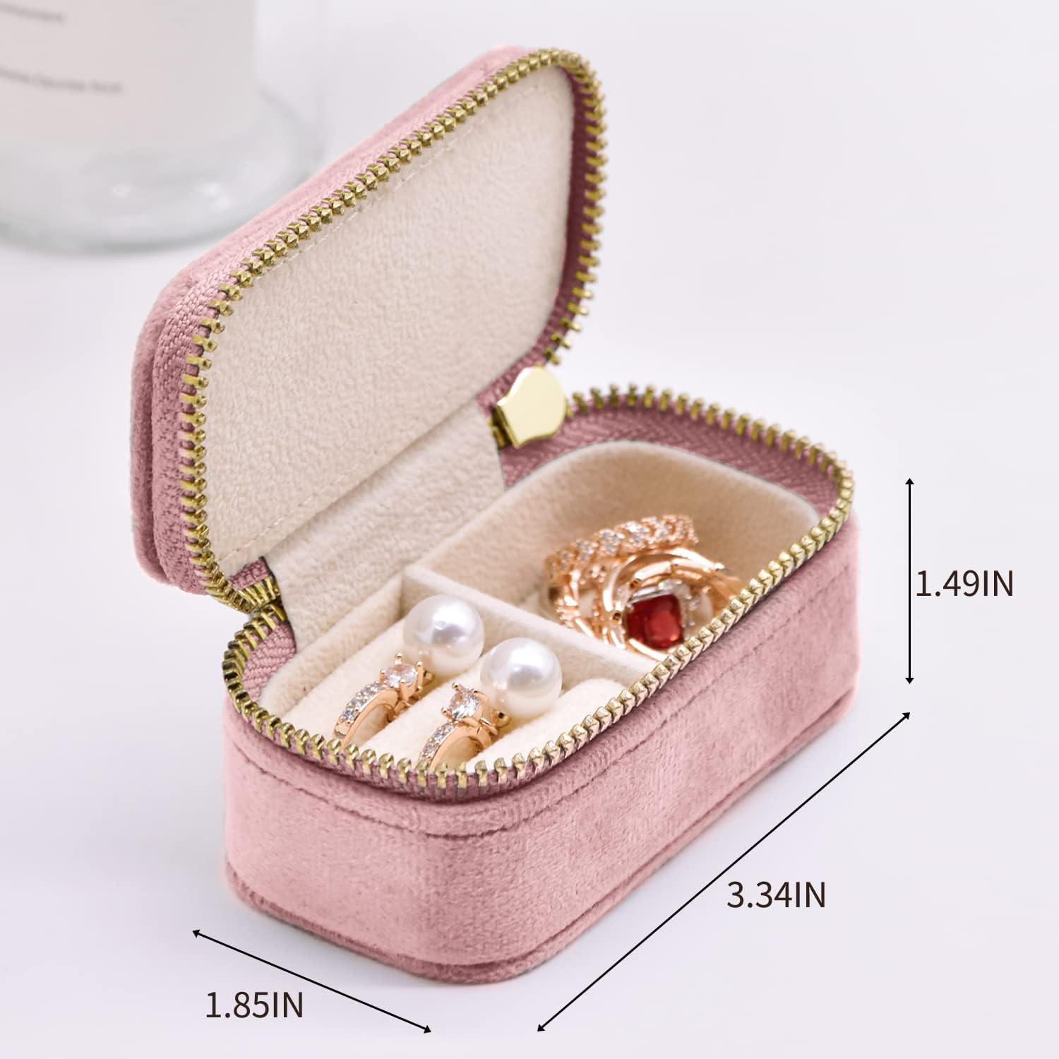 - 【Premium Material】The mini travel jewelry box adopts high quality velvet fabric, exquisite handmade craft, soft touch, no smell, moisture-proof, protects your jewelry from damage and scratch. Besides the delicate metal zipper also can securely store your jewelry.