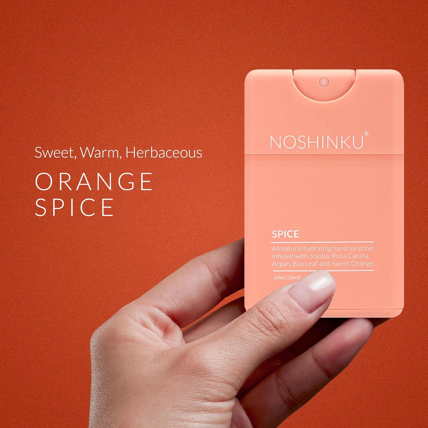 Noshinku - Refillable Hand Sanitizer Orange Coriander 3-Pack, Travel Size Spray, Hydrating Botanical Oils, Natural Ingredients, All Natural Fragrances, Sugarcane Derived Alcohol, No Parabens, No Dyes