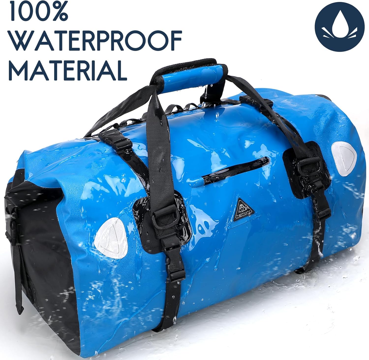 - Waterproof Duffel Bag: Haimont motorcycle dry bag is made of high grade tarpaulin which is 100% waterproof, also the most durable material, rolling up design with high frequency welded seams makes the waterproof performance more reliable