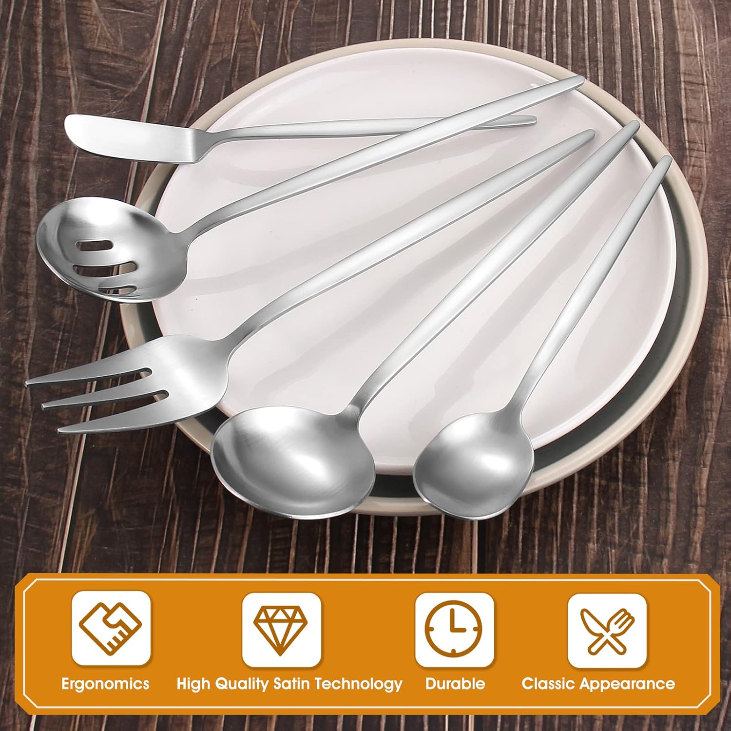 - Included Components : Slotted Serving Spoon×1, Serving Spoon×1, Butter Knife×1, Serving Fork×1, Sugar Spoon×1