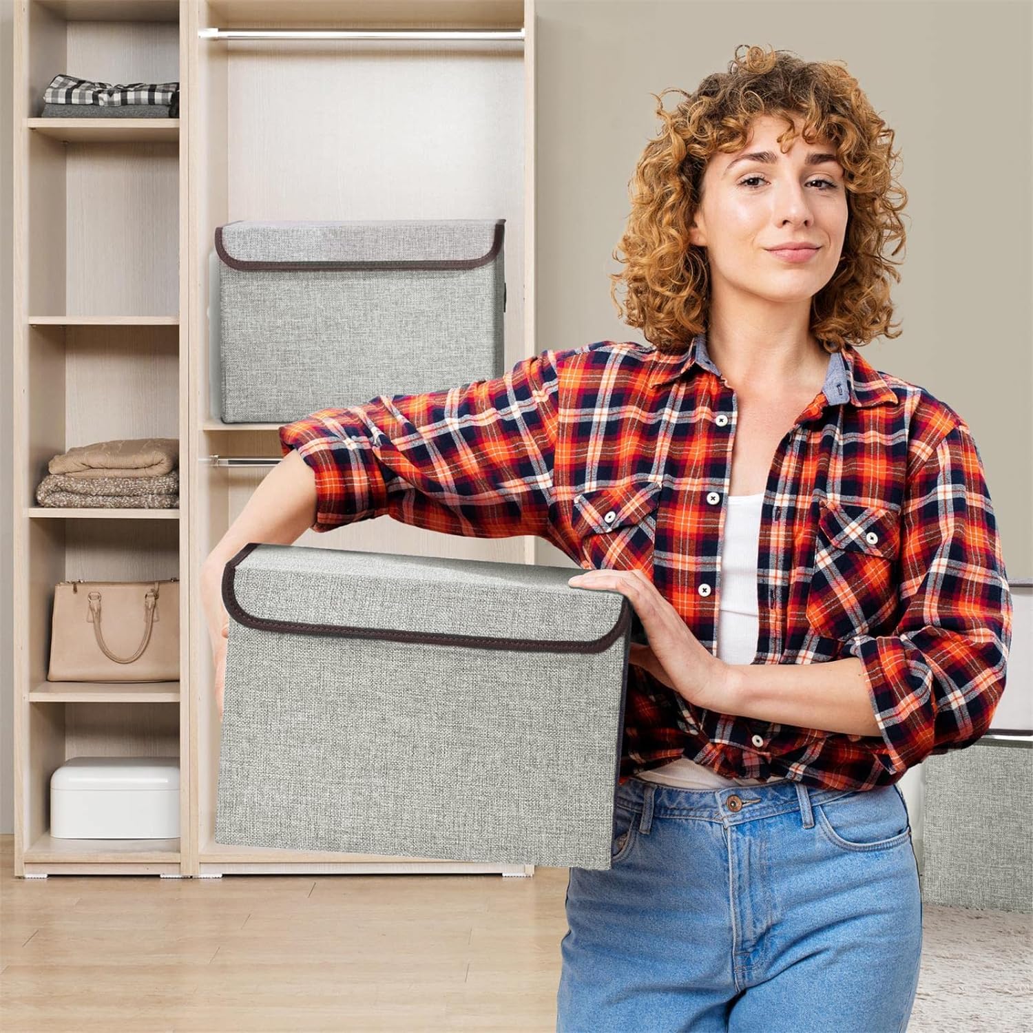 - 【Premium Quality】 - This storage bins with lids are made of durable and breathable linen fabric with the high quality cardboard on the sides and bottom. The inner 2.2mm thick cardboard maintains fabric storage box shape and structural integrity. Both handles are sewn through cardboard to make this decorative storage boxes rigid enough to hold a heavy load.