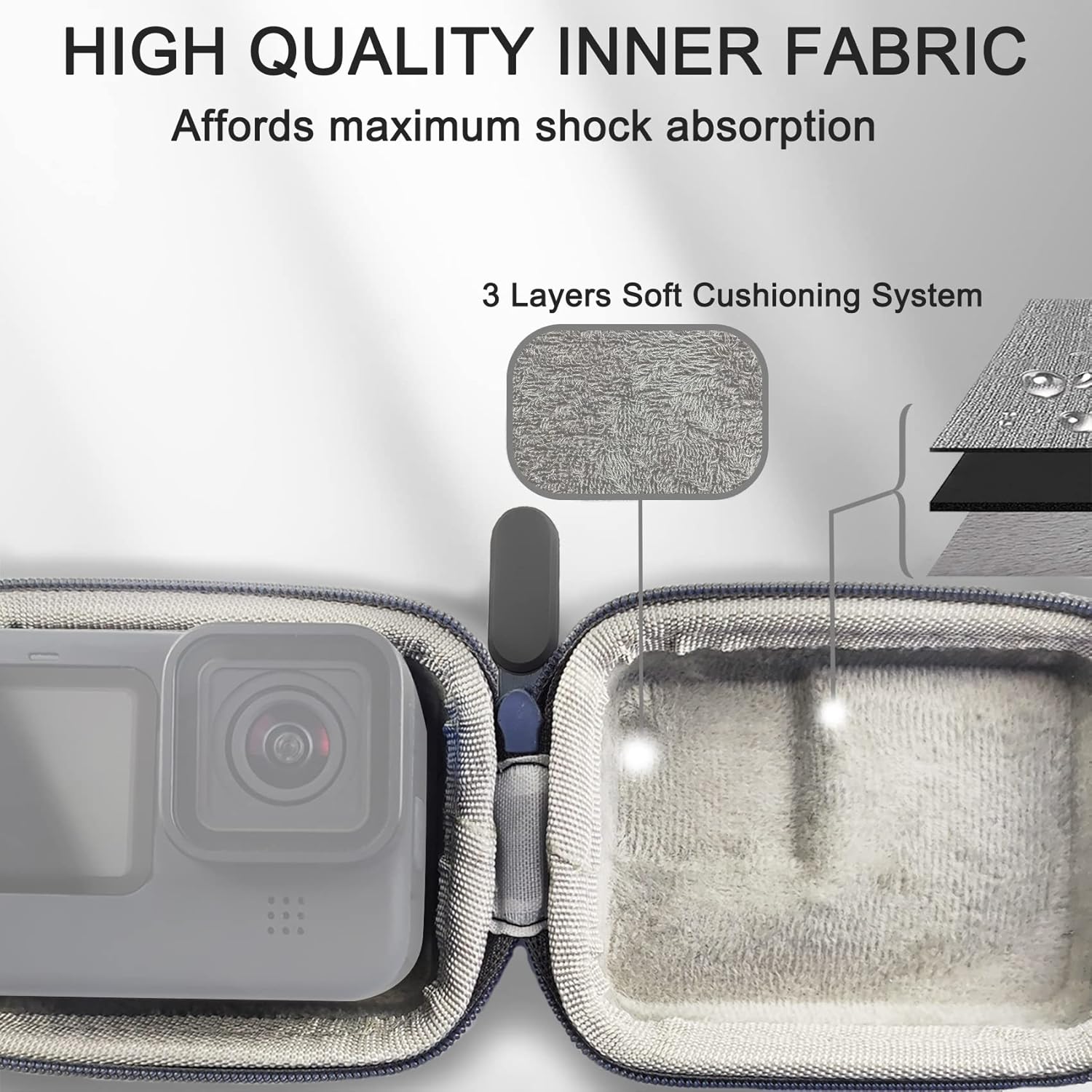 FiTSTILL Grey PU Mini Carrying Case for Go Pro Hero 12/11/10/9/8/7/(2018)/6/5 Black,Hard Shell Travel Storage Case for DJI Osmo Action,AKASO,Campark,YI Action Camera and More
