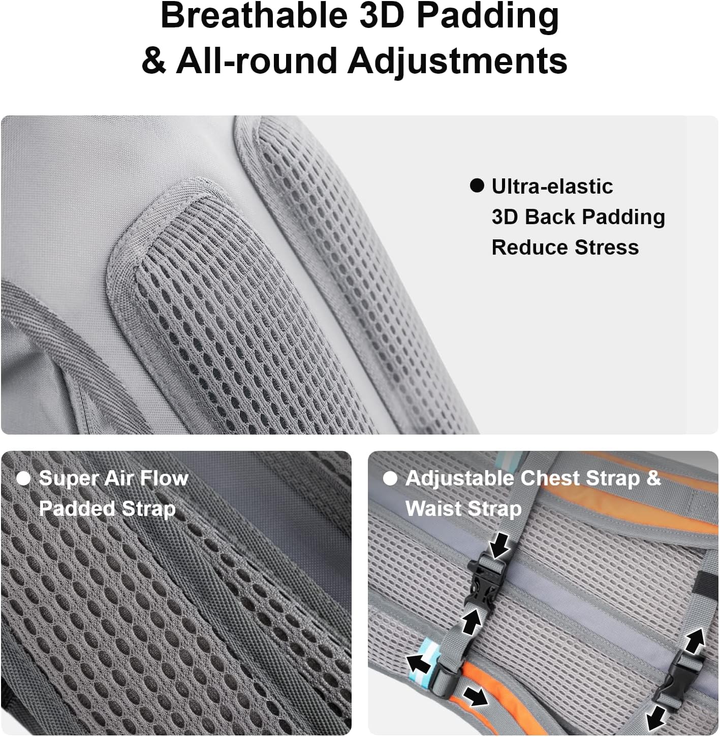 - HIKING/CYCLING/RUNNING/SKIING WITH EASE: This 2 lbs lightweight water backpack features an ultra-elastic 3D breathable padded back, adjustable chest and waist straps to provide comfort and stability for all body sizes. This day pack has got you covered for all your adventures.