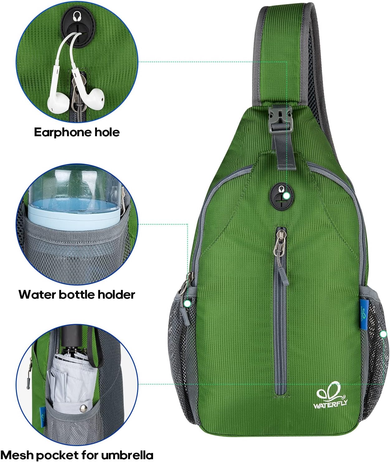 WATERFLY Crossbody Sling Backpack Sling Bag Travel Hiking Chest Bag Daypack