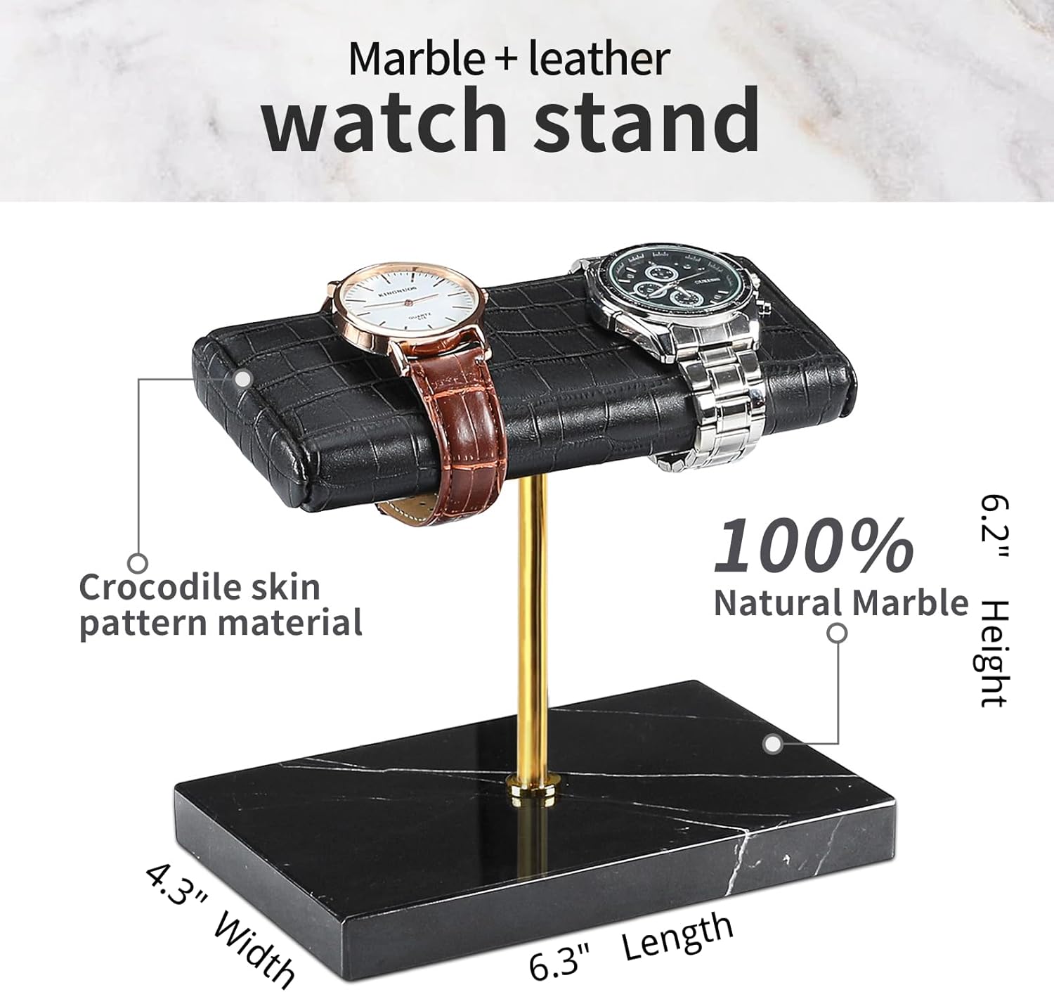 - IMPORTED LEATHER & MARBLE – Handcrafted with leather and marble - the stand is strong, durable, and safe. This is like a bed for your watch.