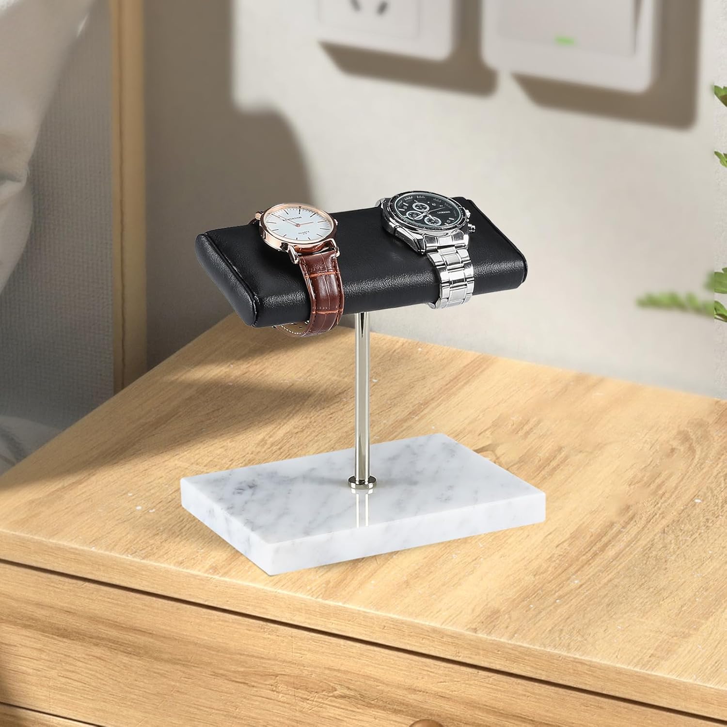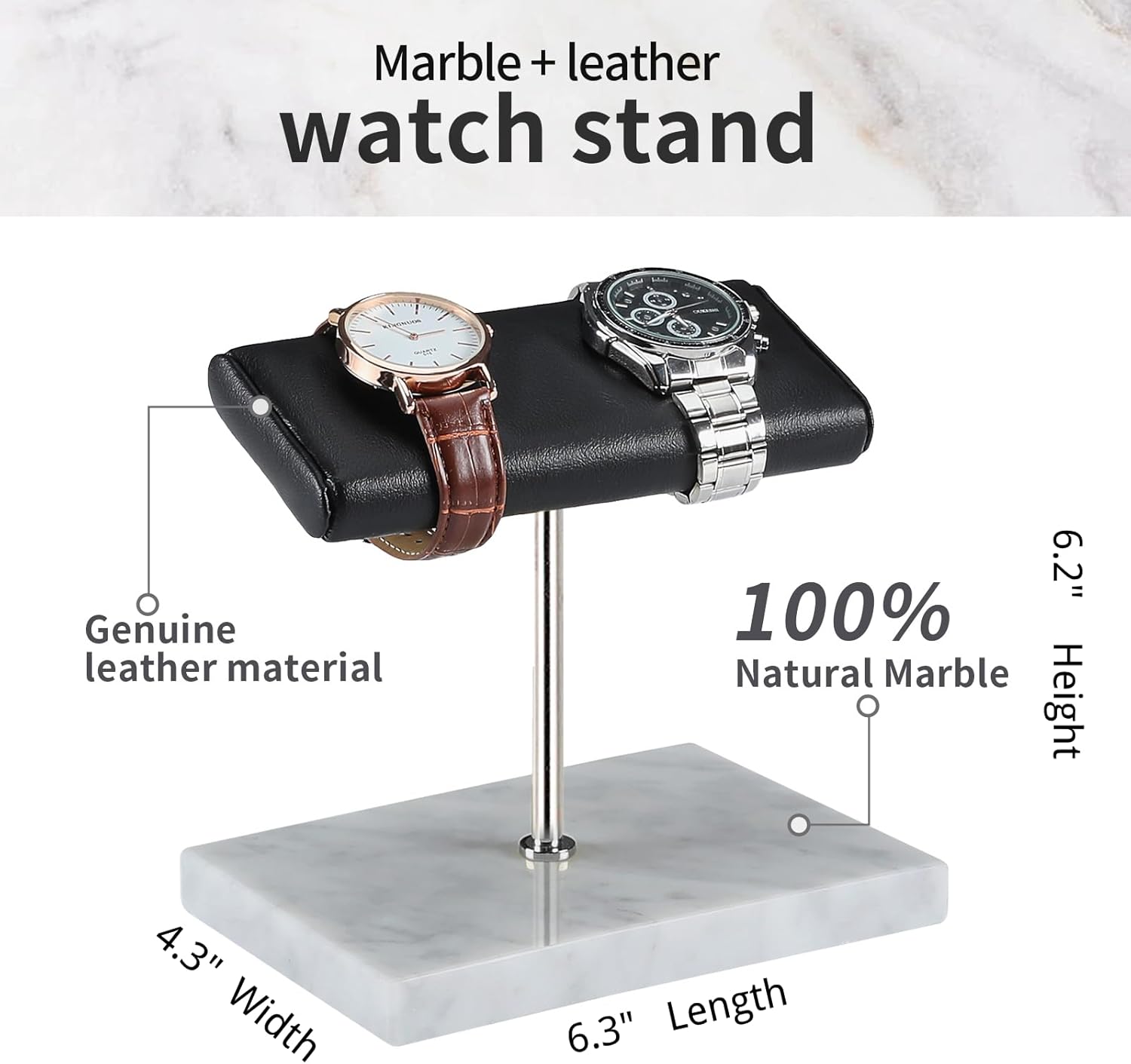 - IMPORTED LEATHER & MARBLE – Handcrafted with leather and marble - the stand is strong, durable, and safe. This is like a bed for your watch.