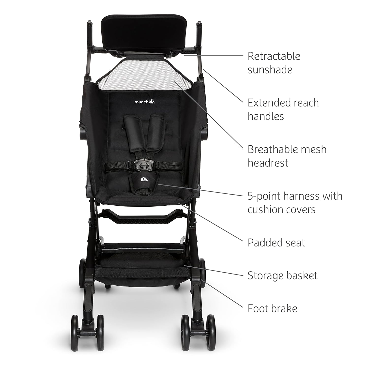 Munchkin Sparrow Travel Baby Stroller, Ultra Compact and Lightweight, for Babies and Toddlers, Black