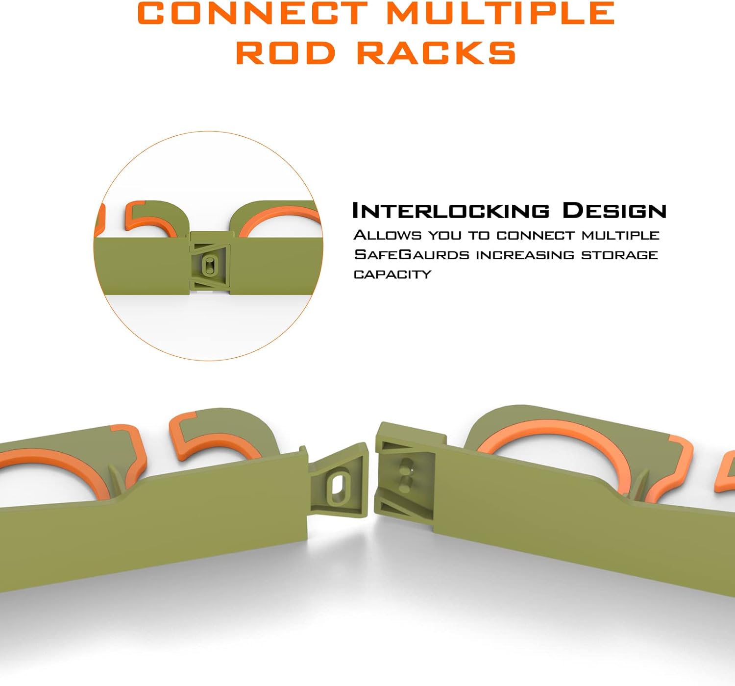 - STORE 12 RODS OR COMBOS – The KastKing SafeGuard fishing rod rack can store up to 12 rods or combos in less than 36” of wall space. We have also designed interlocking ends making it easy for you to string a series of SafeGuard rod racks together for even greater storage capacity.