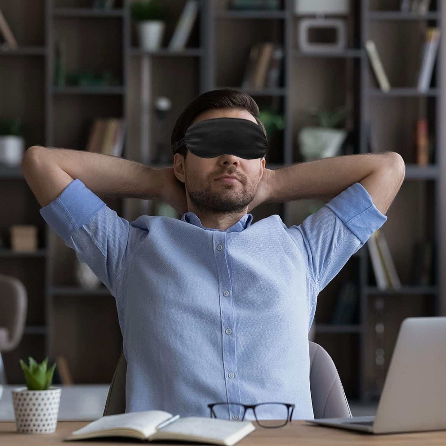 - Elastic Head Strap: Eye covers for sleep feature a comfortable, Elastic and pain-free head strap that does not move or fall off while you’re sleeping. This is sleep aid mask is so lightweight yet fits perfectly on your face that you can wear it for sleeping, concentration or meditating for Yoga. The headband design won't tangle hair like contoured masks, fit for side-sleepers as well.