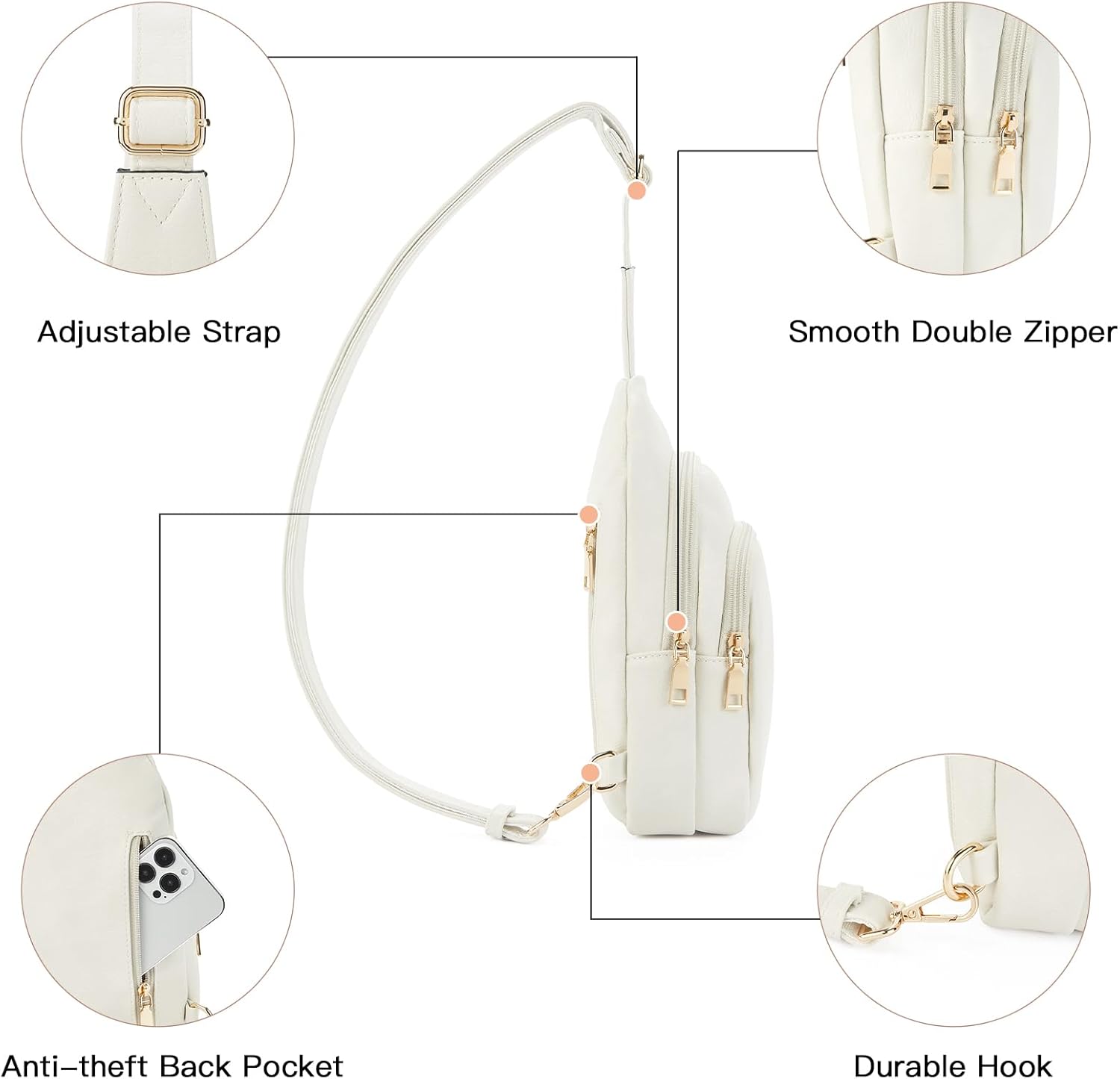 • Multi-way to Carry: This sling bag for women could be used as a small crossbody purse; sling bag; chest bag or shoulder bag. With adjustable straps, you can tighten or loosen them to fit your size or activity needs