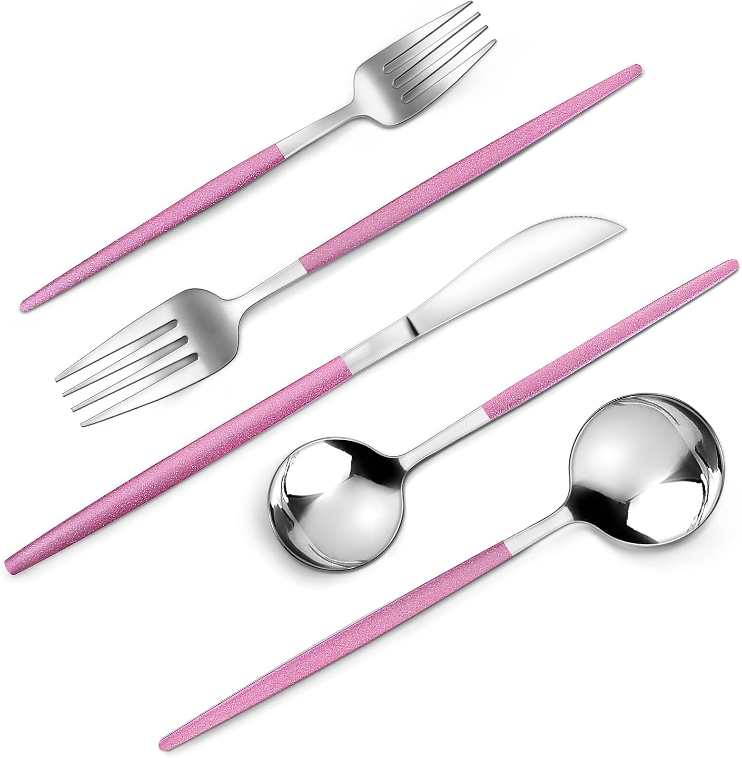 Mirror Silver Rosy Silverware Set, 20-Piece Stainless Steel Flatware Set, Satin Finish tableware Cutlery Set, Service for 4, Home and Restaurant, Dishwasher Safe