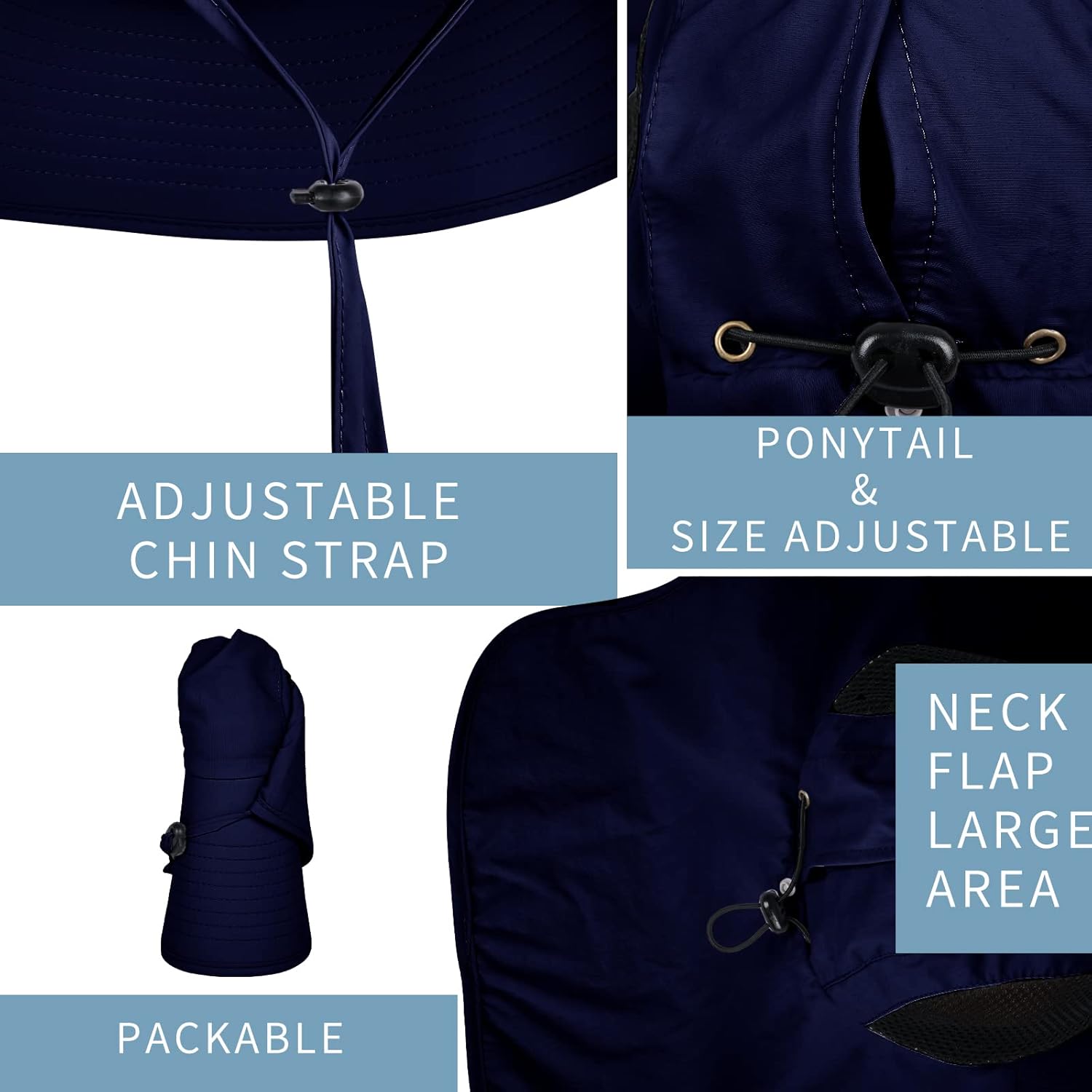 • PERFECT SUN PROTECTION FOR HEAD AND NECK – The outdoor hat has a large wide brim and neck flap to protect you from the blazing sun at all angles. The hat is rated for 50+ UPF to protect against harmful UVA and UVB rays, offering complete UV protection for your face, ears, and neck.