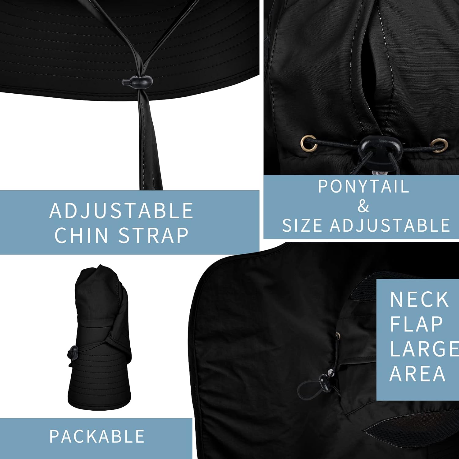• PERFECT SUN PROTECTION FOR HEAD AND NECK – The outdoor hat has a large wide brim and neck flap to protect you from the blazing sun at all angles. The hat is rated for 50+ UPF to protect against harmful UVA and UVB rays, offering complete UV protection for your face, ears, and neck.
