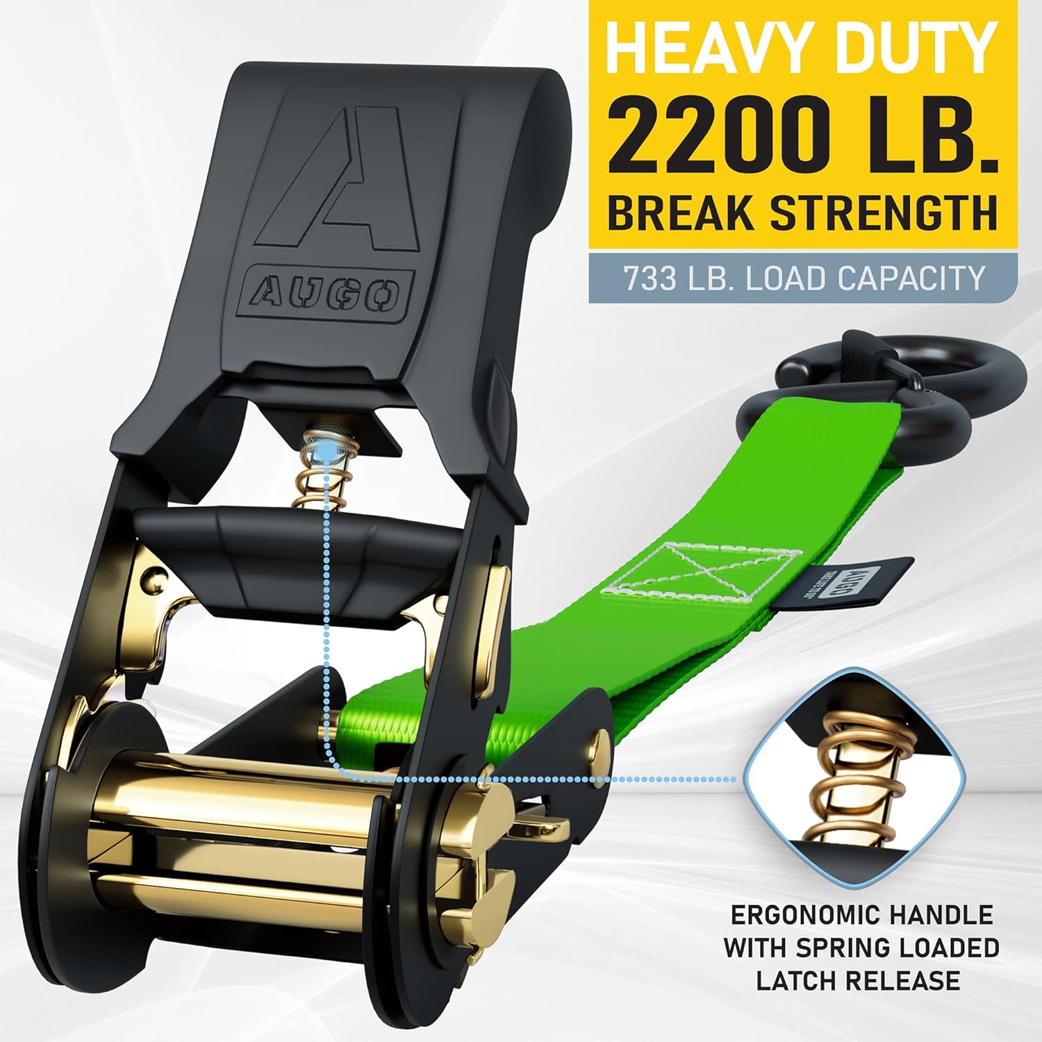 AUGO Ratchet Straps Heavy Duty 4 Pack -15 FT - 2200 LB Break Strength – with Safety Lock S Hooks - Cargo Straps for Moving, Appliances, Motorcycle – Soft Loop Tie Down Straps