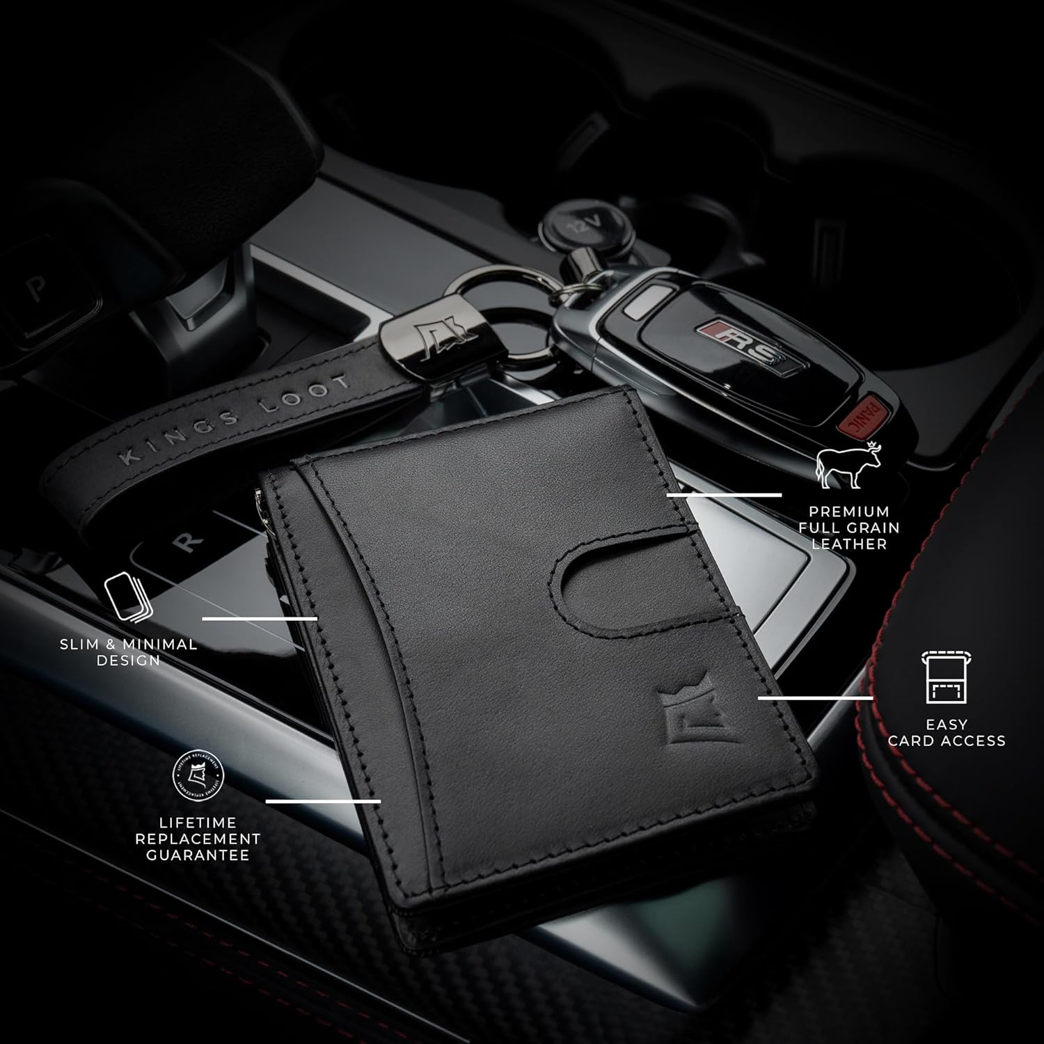Kings Loot Custom Wallet for Men | Engraved Leather Slim Wallet with Money Clip | Personalized RFID Blocking Design | Minimalist & Stylish Wallets (Black)