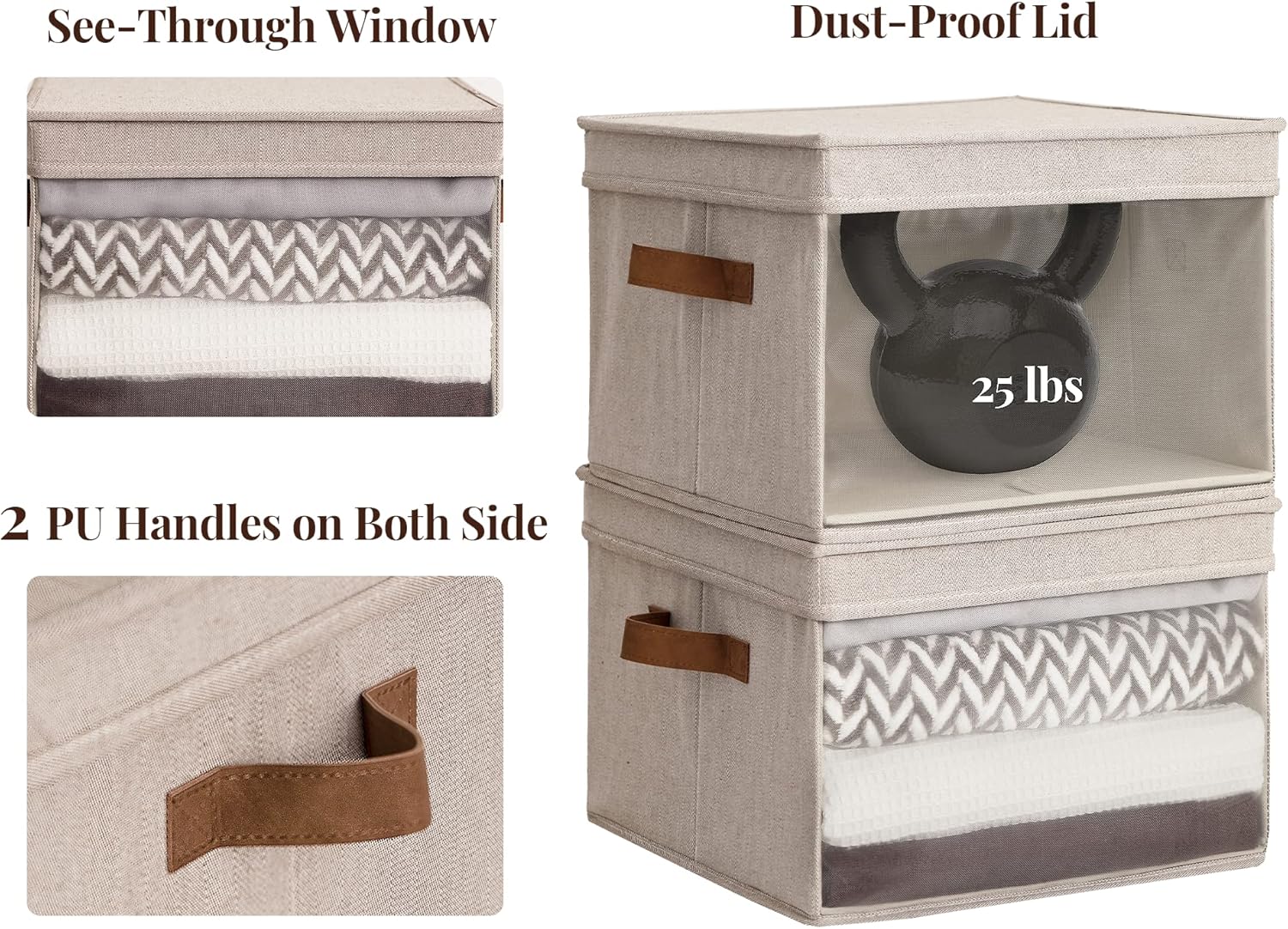 - Reinforced Handles: Sturdy PU handles ensure easy lifting and rearranging. Great for fabric storage bins with lid when reorganizing closets or moving rooms.