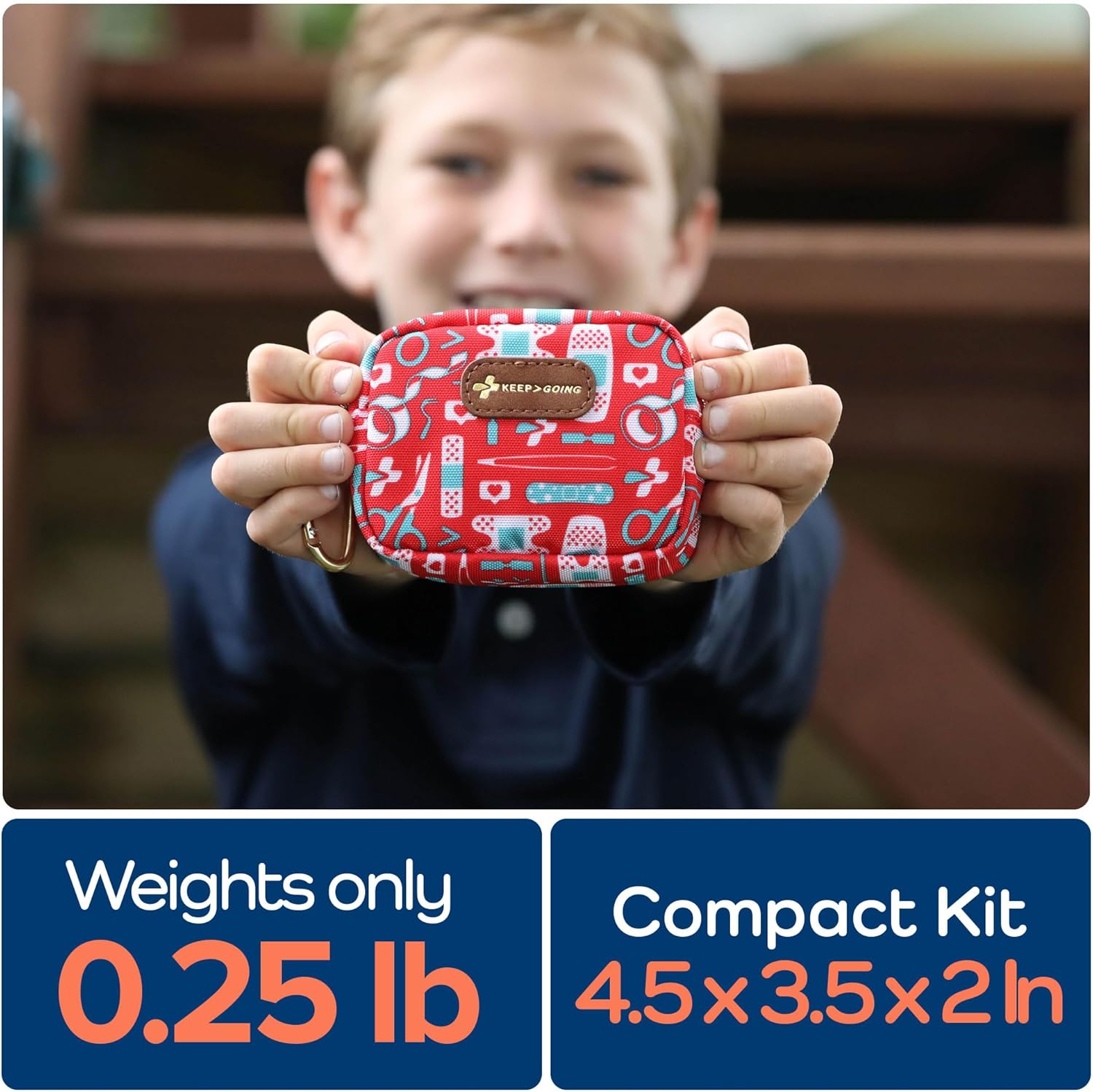 KeepGoing Small Travel First Aid Kit Kids – 60 Pc. Mini First Aid Kit for Purse, Diaper Bag, & Backpack with Latex-Free Bandages – 4 Oz., & 4.5 x 3.5 x 2 in, TSA-Approved