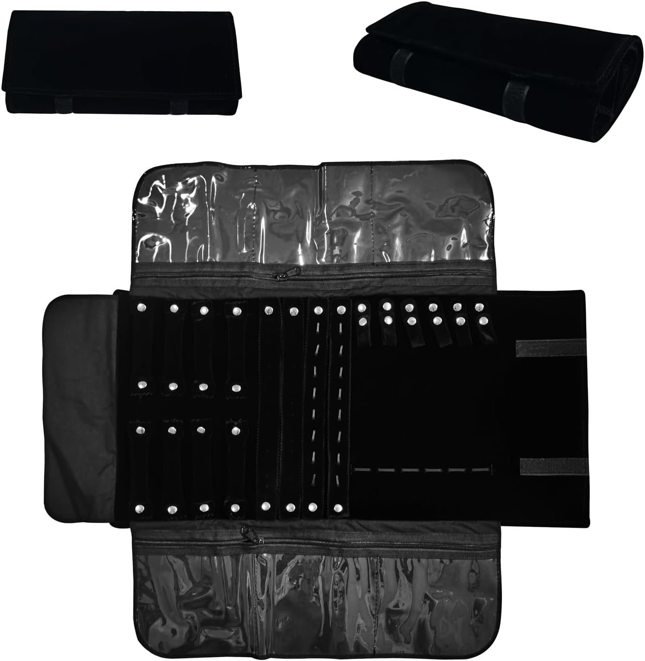 Velvet Travel Jewelry Case Roll Bag Organizer for Necklace Bracelet Earrings Ring (Black)