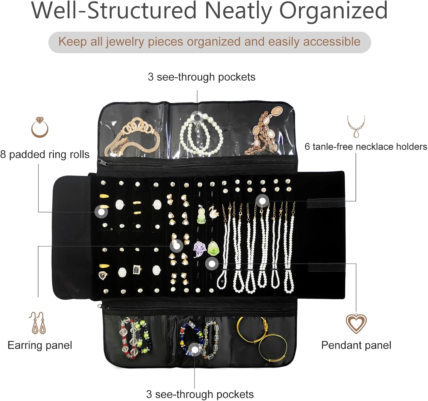 - 6.Superior Quality: Our Travel Jewelry Roll Bag Organizer is made of soft velvet which provides excellent protection to your precious jewelry