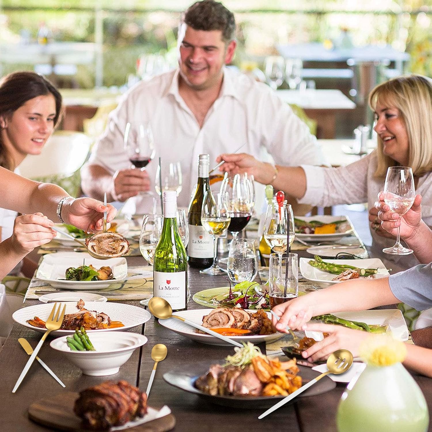 - Included Components : Slotted Serving Spoon, Serving Spoon, Butter Knife, Serving Fork, Sugar Spoon