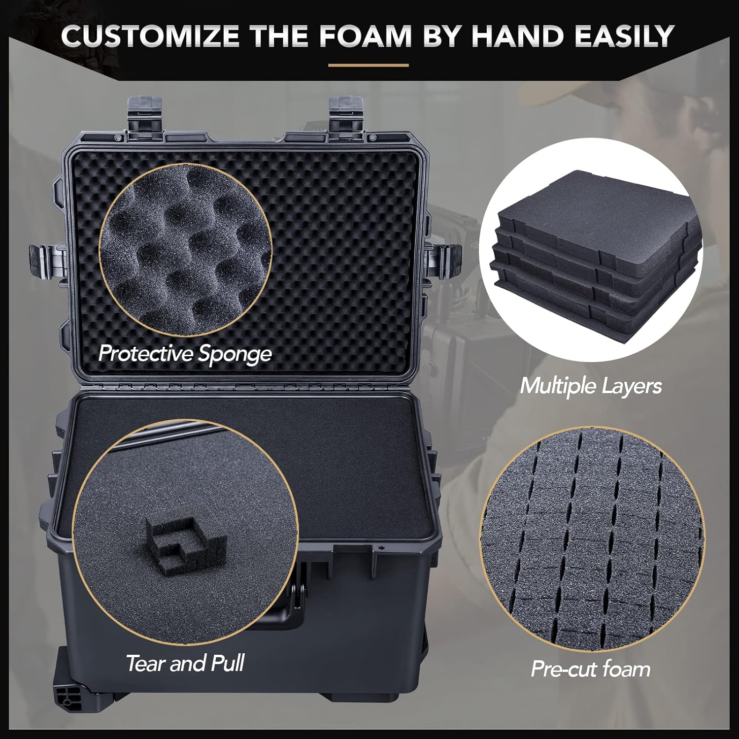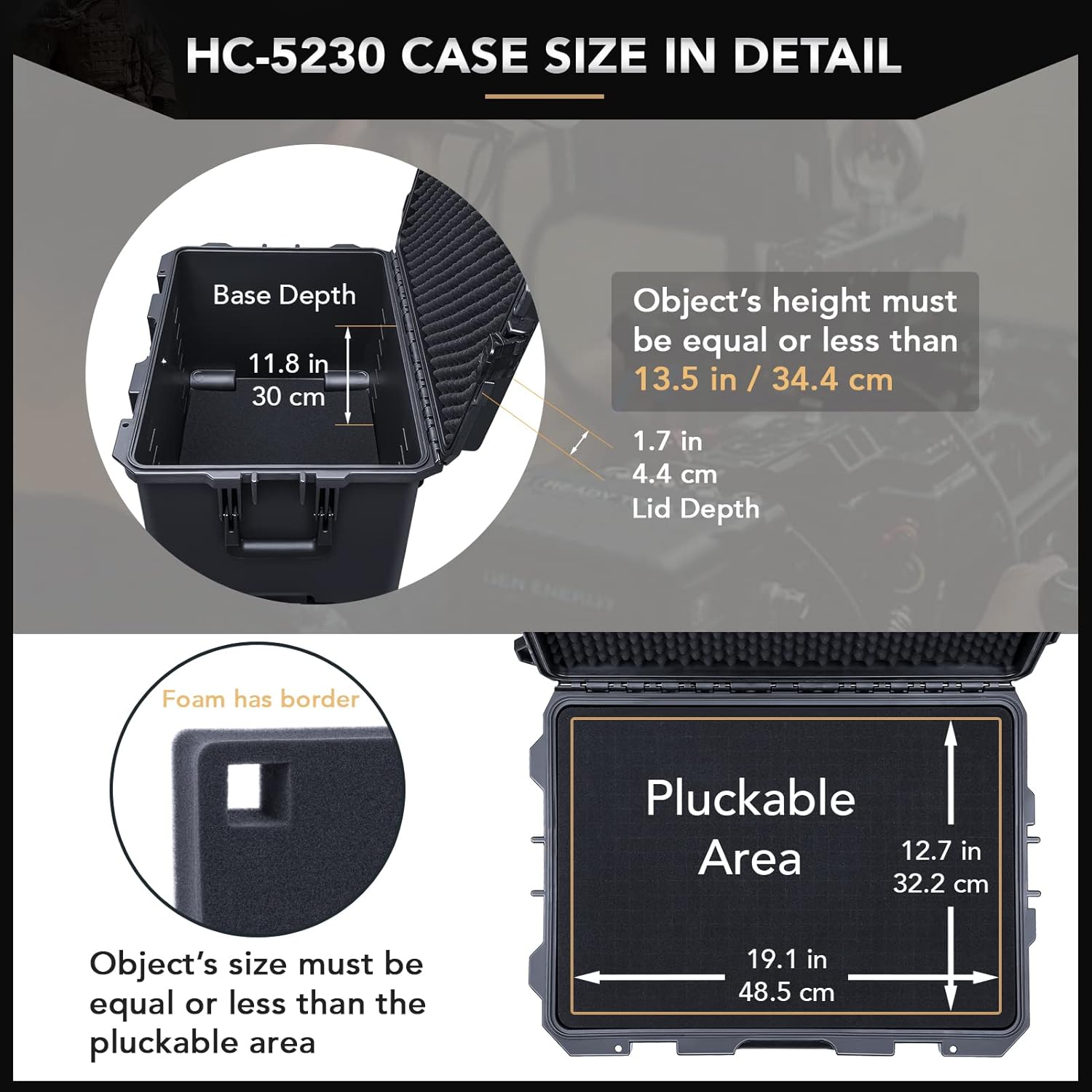 Lykus HC-5230 Large Waterproof Hard Case with Wheels and Customizable Foam, Interior Size 20.5x14.2x13.6 inch, Suitable for cameras, lenses, electronic equipment and more