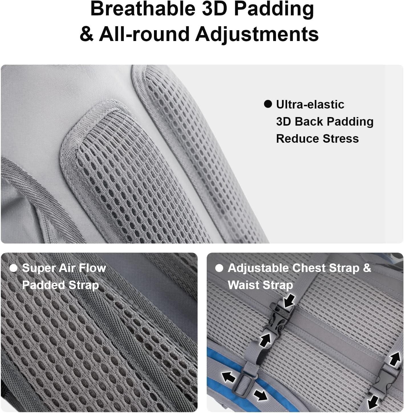 - HIKING/CYCLING/RUNNING/SKIING WITH EASE: This 2 lbs lightweight water backpack features an ultra-elastic 3D breathable padded back, adjustable chest and waist straps to provide comfort and stability for all body sizes. This day pack has got you covered for all your adventures.