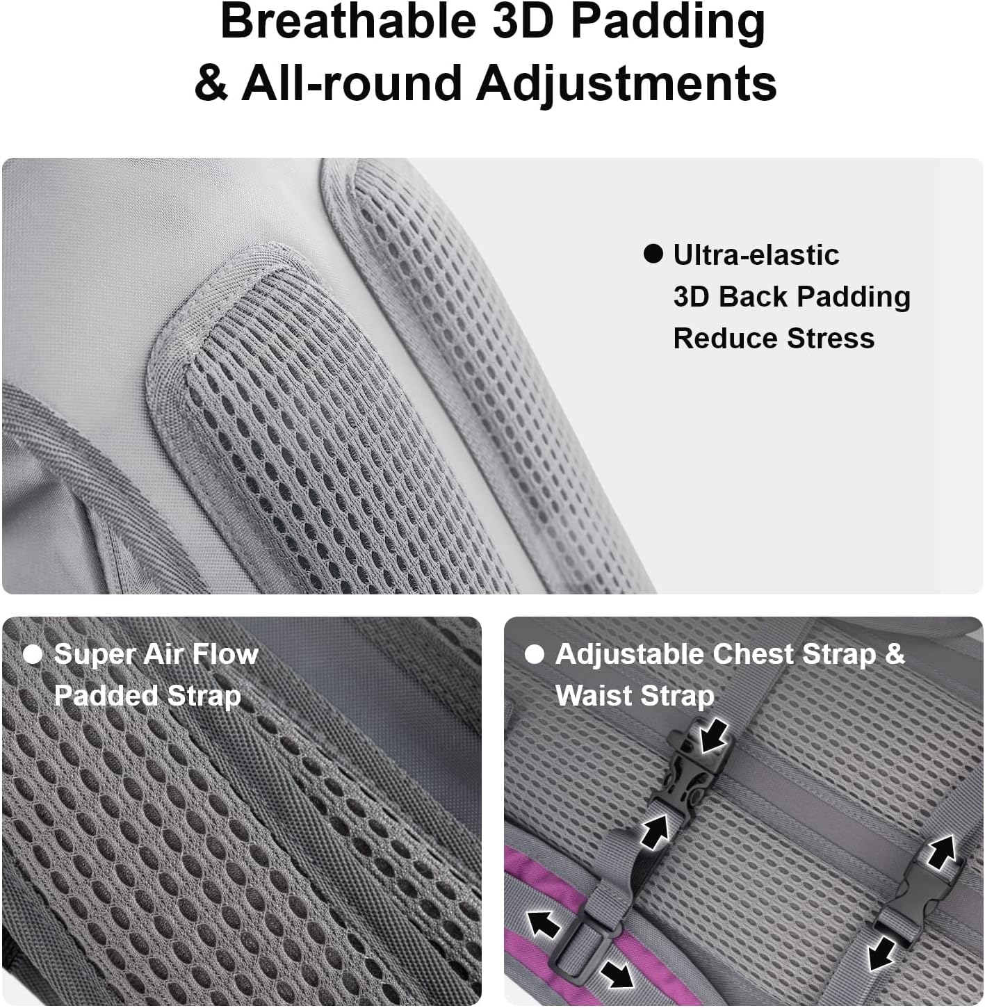 - HIKING/CYCLING/RUNNING/SKIING WITH EASE: This 2 lbs lightweight water backpack features an ultra-elastic 3D breathable padded back, adjustable chest and waist straps to provide comfort and stability for all body sizes. This day pack has got you covered for all your adventures.