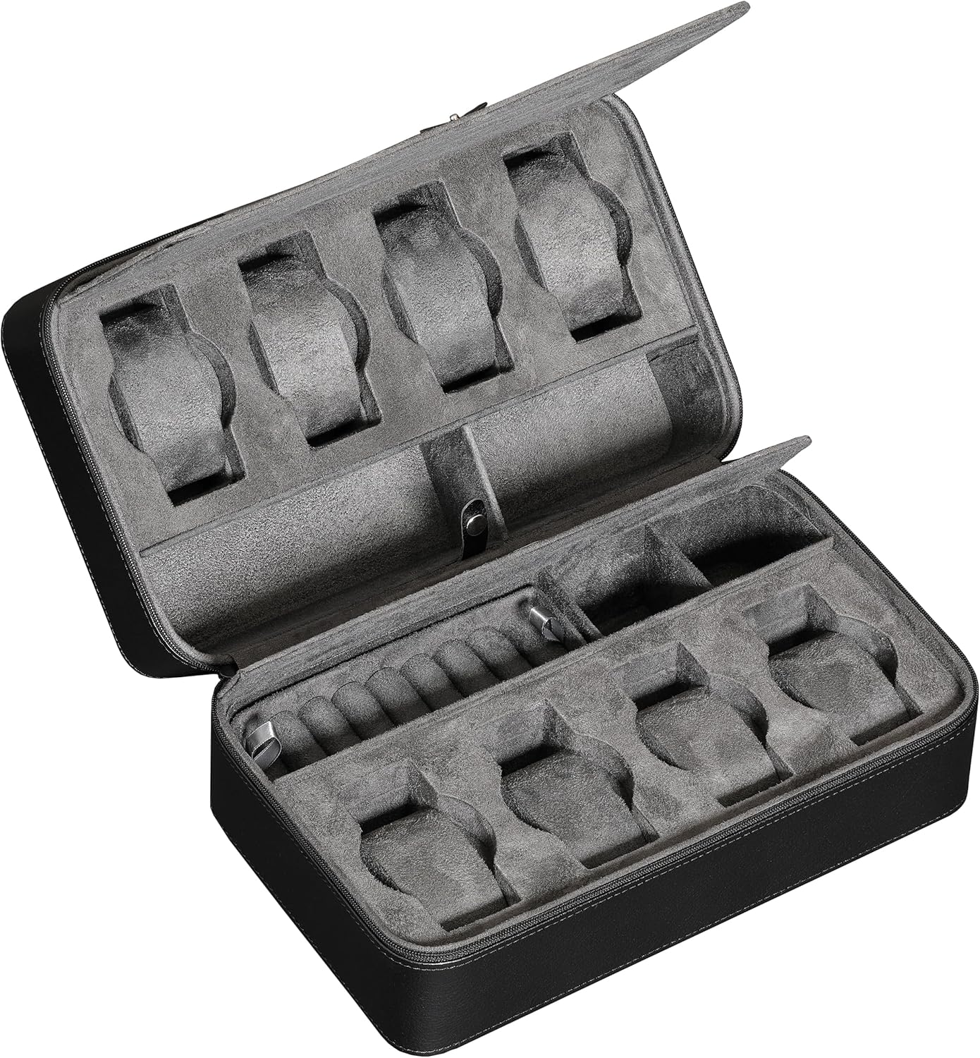 - PERFECT TRAVEL ACCESSORY: Lightweight and perfect for vacation getaways, work travel or just storing your valuable watches and accessories. With ample space to accommodate up to 8 watches, along with 2 pairs of sunglasses or your favorite rings and cufflinks, you'll have everything you need safely and securely organized.