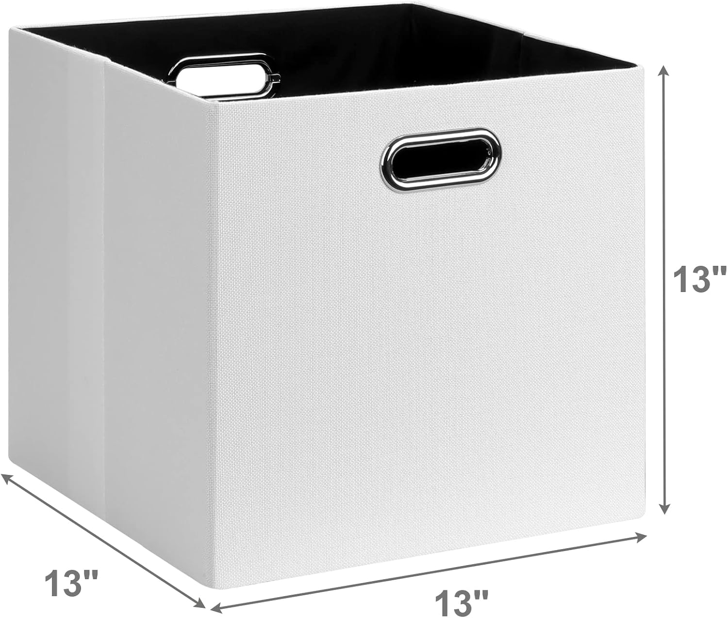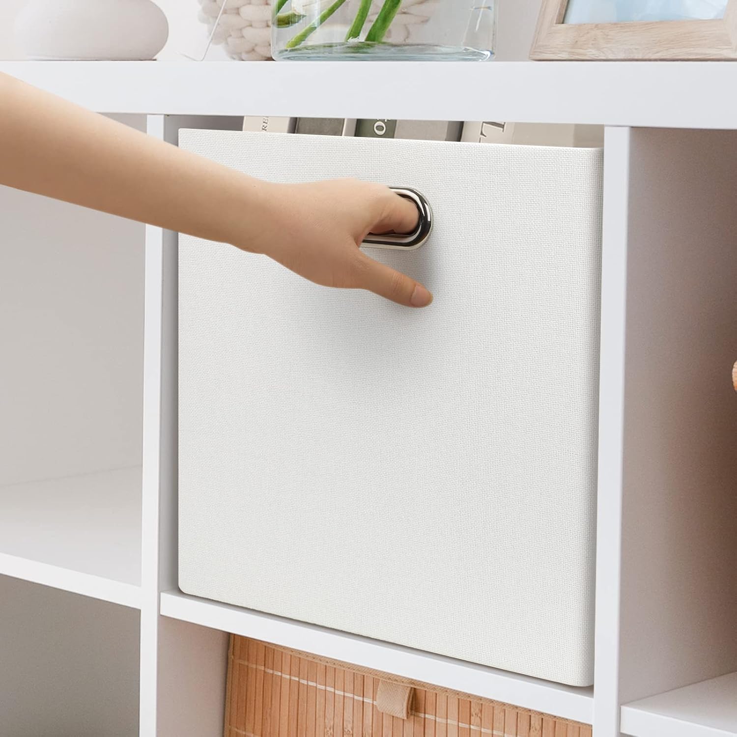 Posprica Fabric Storage Cubes, 13x13 Collapsible Storage Bins with Dual Handles, Foldable Storage Boxes Basket for Closet Shelf Cabinet Bookcase Organization, Set of 4, White