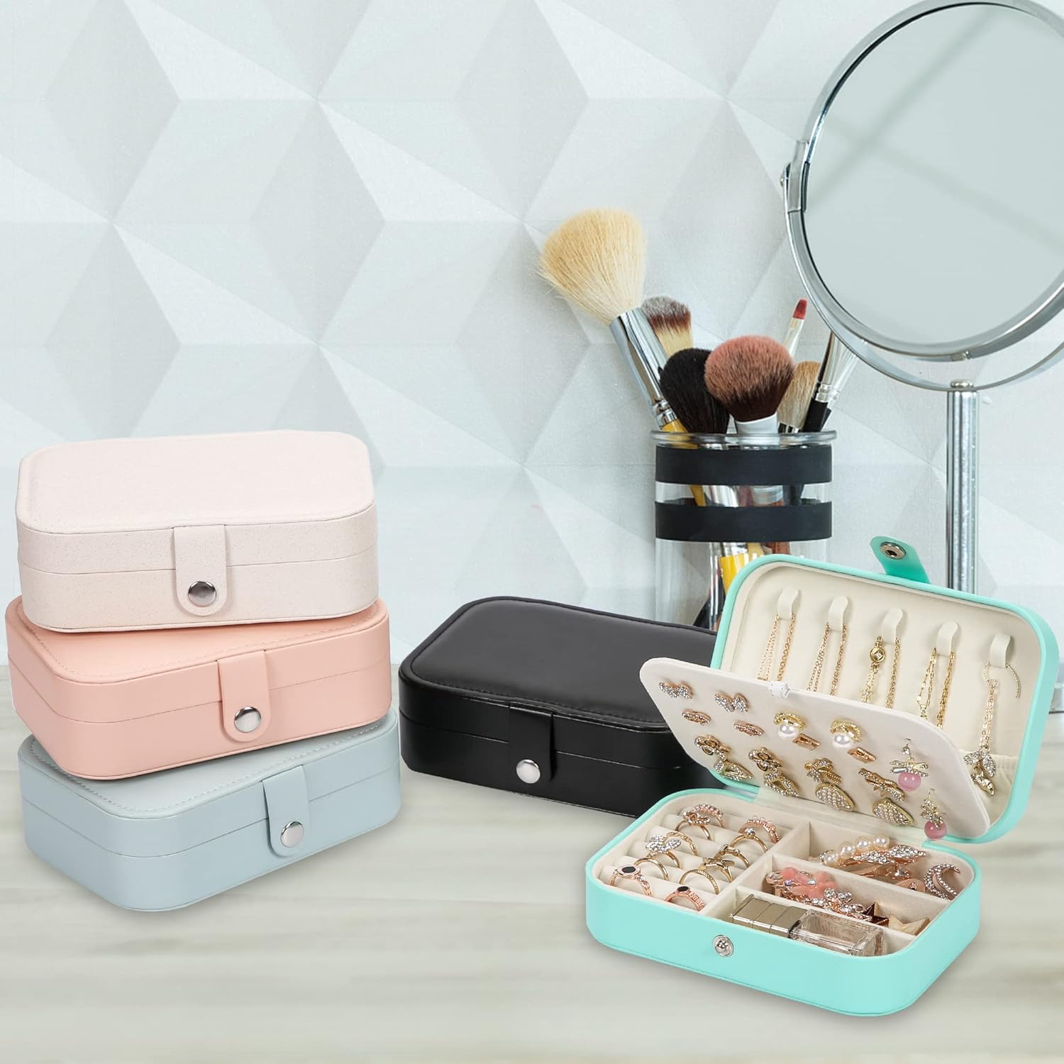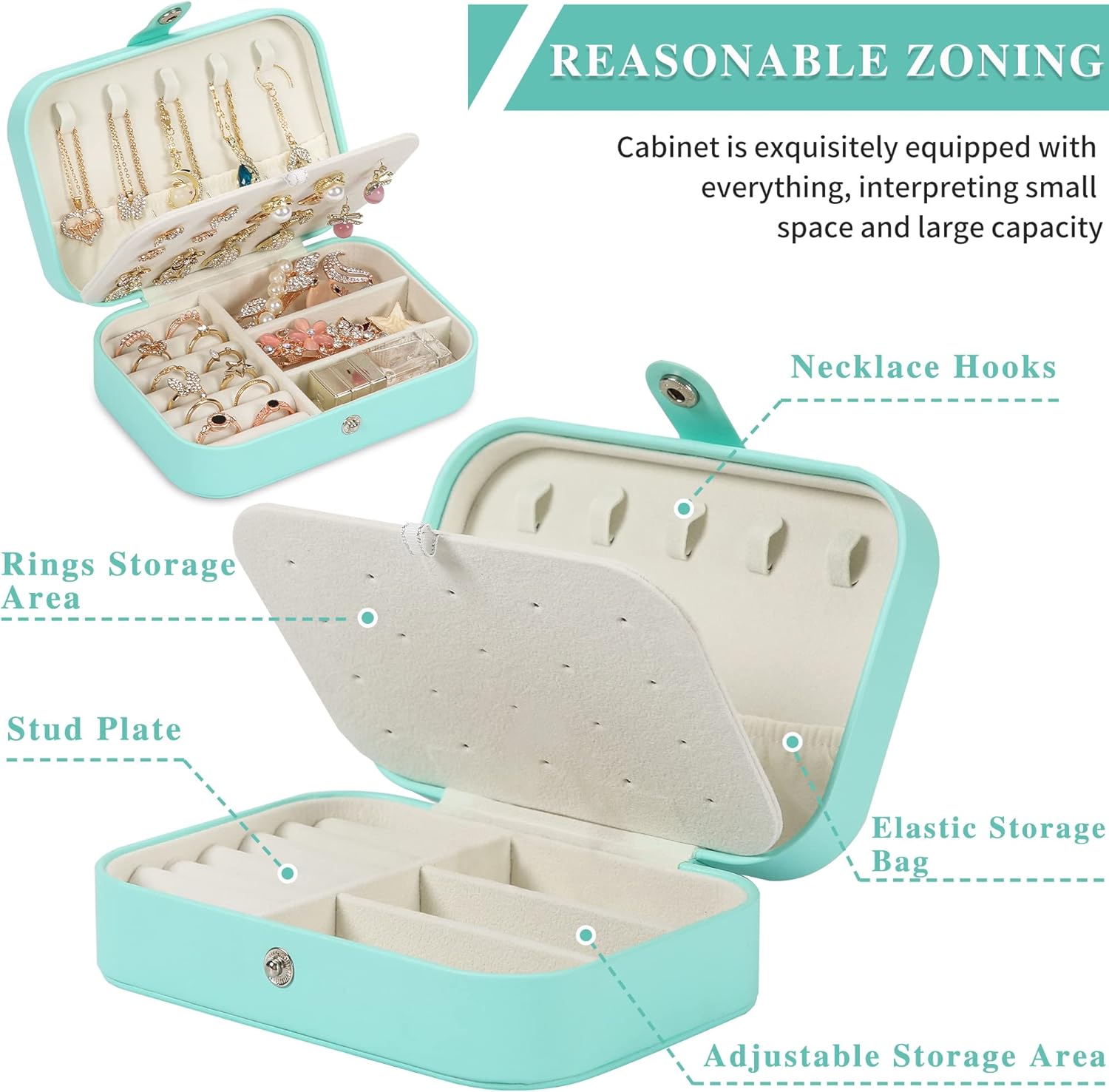 - 【Portability】Mini jewelry box size: L*W*H, (6.2in*4.3in*1.9in). Enough to store jewelry, but small enough to save space, portable and light weight, easy to put in your handbag or luggage to keep all your jewelry in order.