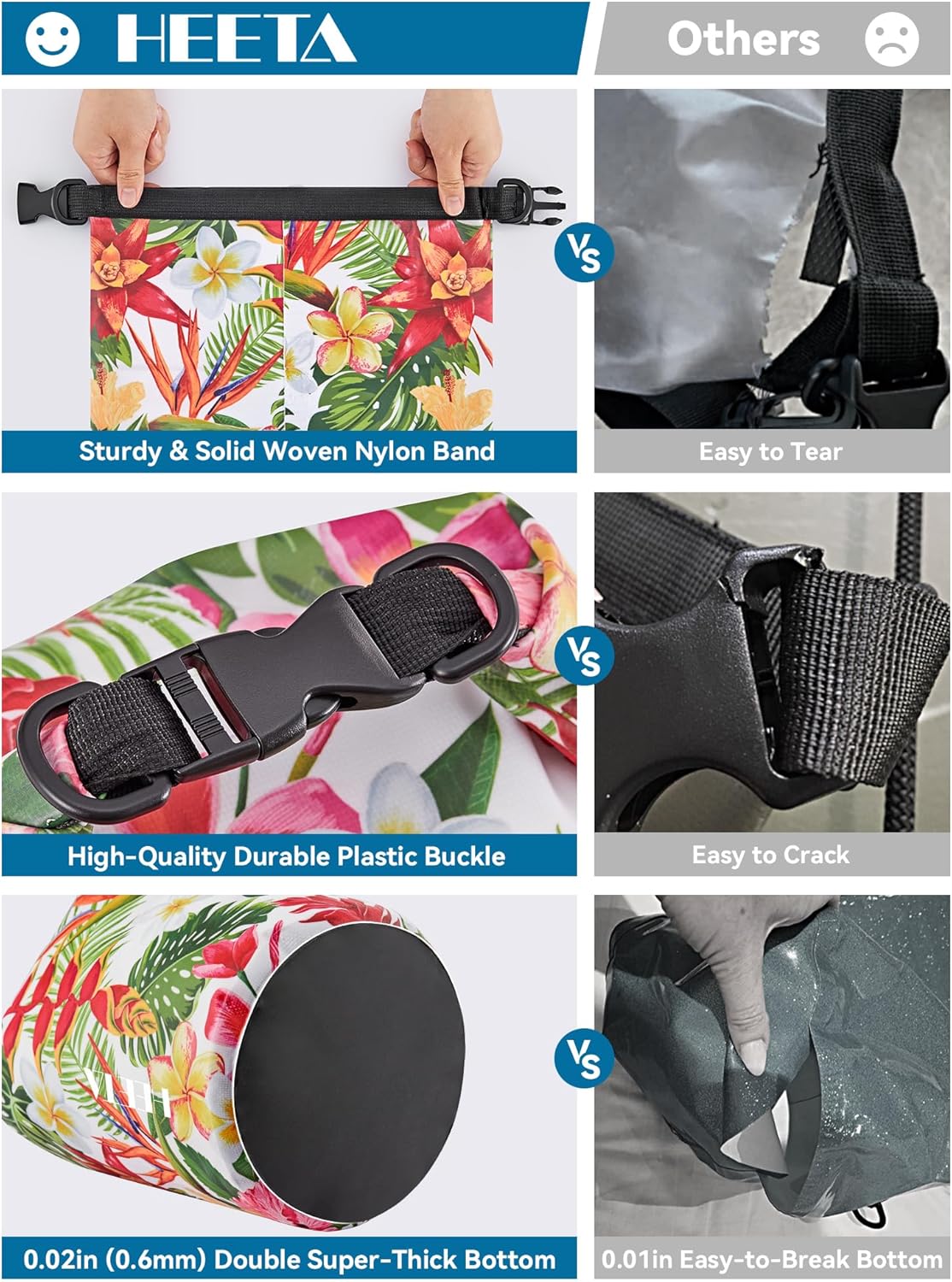 • Durable - Made of 0.02 in (0.5 mm) thick upgraded wear-resistant PVC material, it's suitable for all kinds of outdoor activities. Waterproof bag is well adapted to various weather and environment