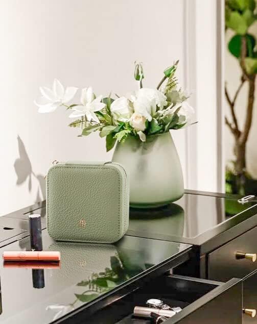 S.Leaf Mini Jewelry Case - Portable Travel Jewelry Box for Women (01 Lychee Sage Green)