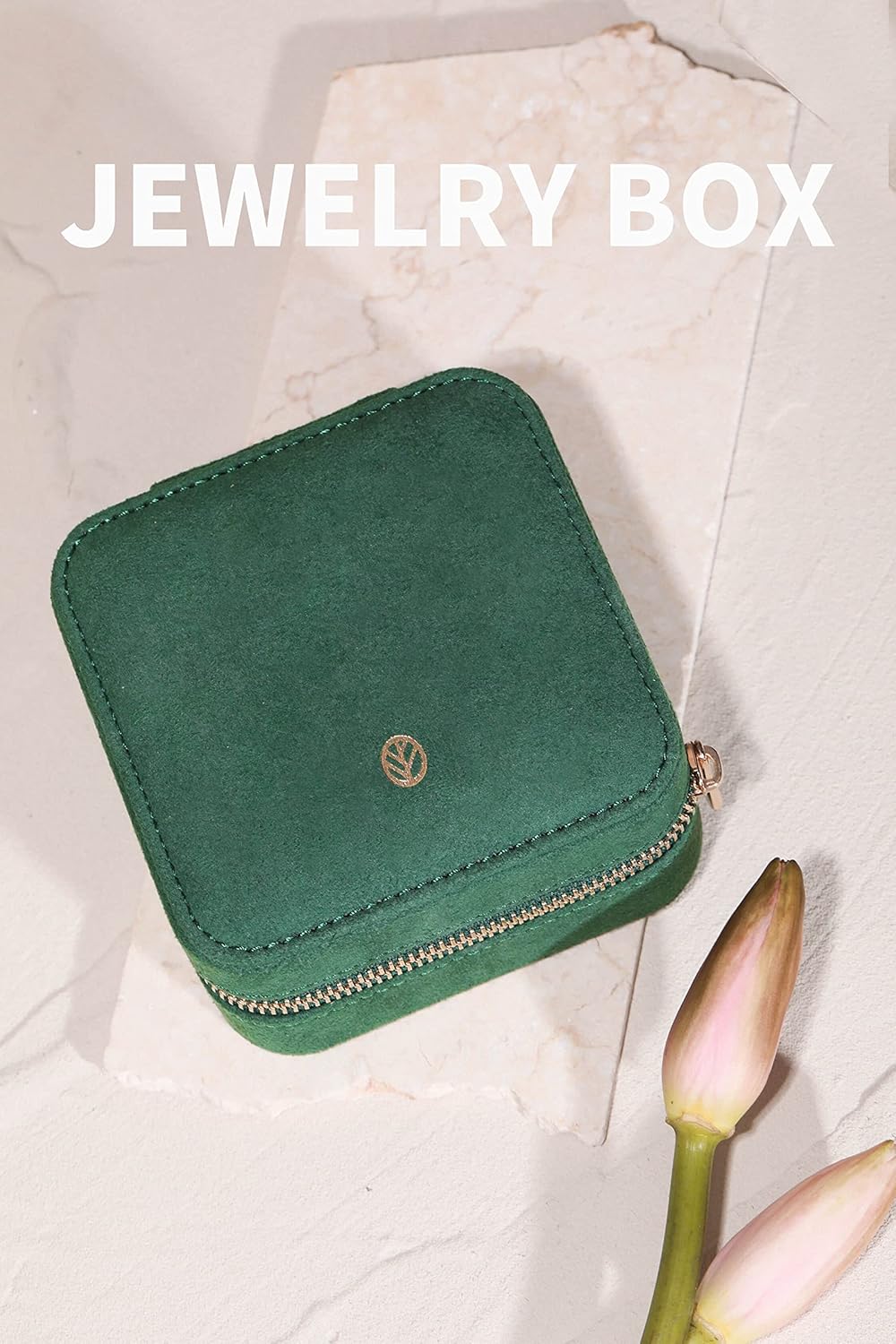 S.Leaf Travel Jewelry Organizer Travel Jewelry Boxes for Women Small Jewelry Travel Case Box Portable Travel Jewelry Case Travel Case Mini Jewelry (08_Suede_Touch_Emerald)