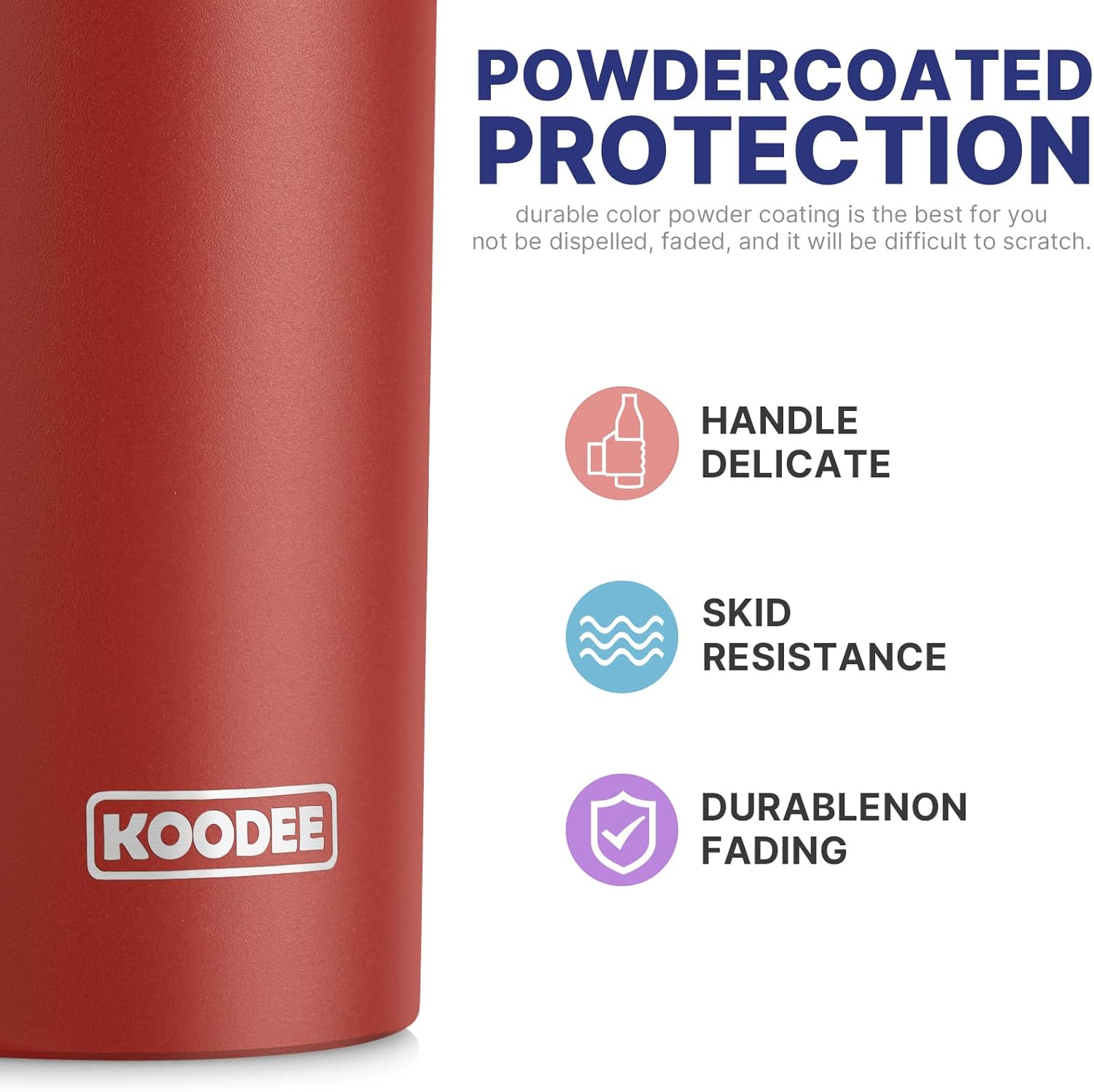 - 🍺Double-Wall Vacuum: KOODEE stainless steel skinny tumbler adopts double-layer vacuum heat insulation technology. Keep hot drinks for 12 hours and cold drinks for 24 hours. Vacuum technology makes the outer wall sweat-free, no matter what beverage you drink, you can keep your fingers dry and will not burn your fingers