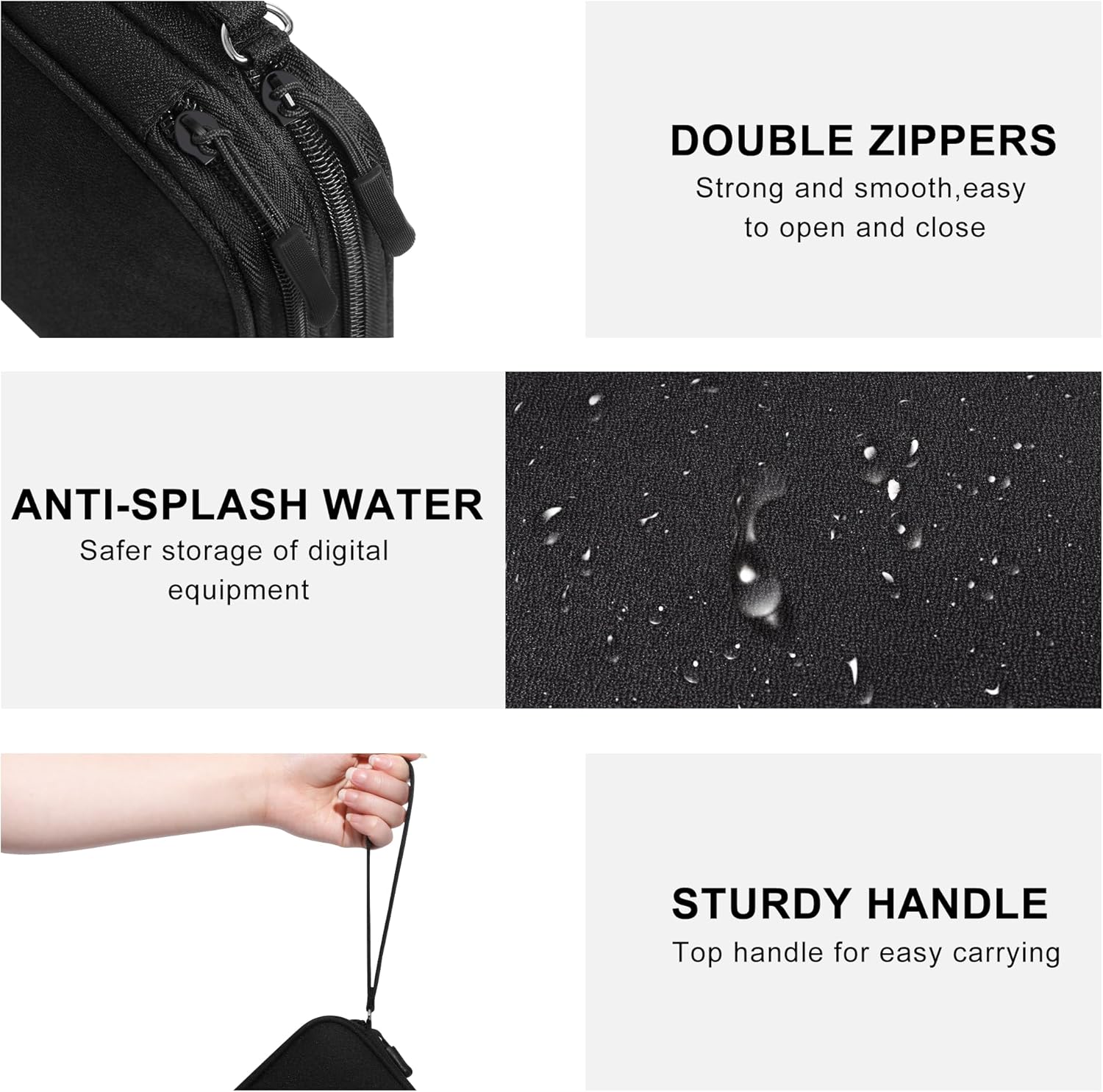 • PERFECT FOR TRAEL: Size: 9.45in/24cm*7.09in/18cm*1.57in/4cm, The travel cable organizer is designed with a hand strap, portable design and ideal size are easy to carry and fit in your handbag and luggage. Just put all your needed devices in the cable organizer,you are ready to go, preventing you from leaving things behind.