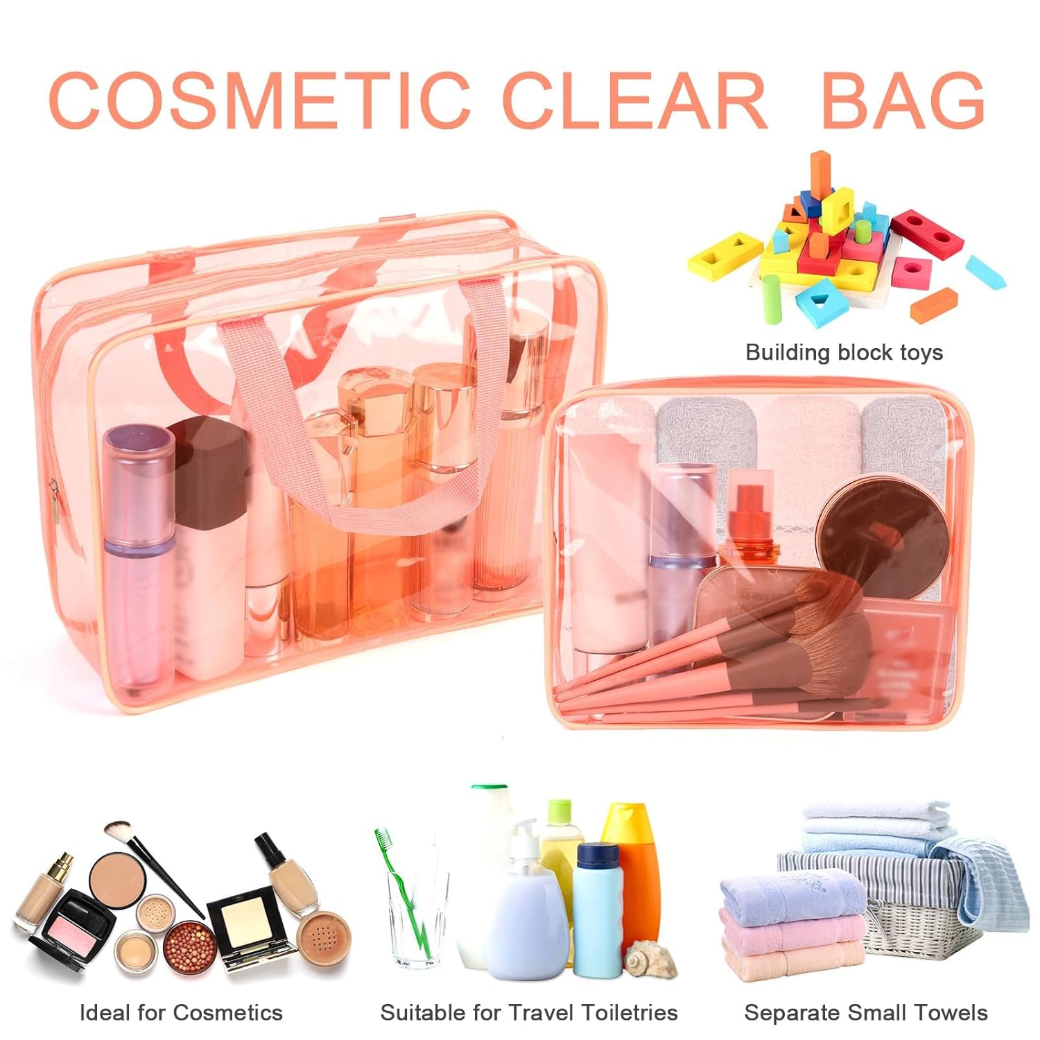 - IMPROVED ZIPPER and HANDLE STRAP: With well-constructed sturdy zipper head make it more smooth. The handle straps offer more convenience while using, you can hang the clear cosmetic bag on a towel rack, shower rod or anywhere you need