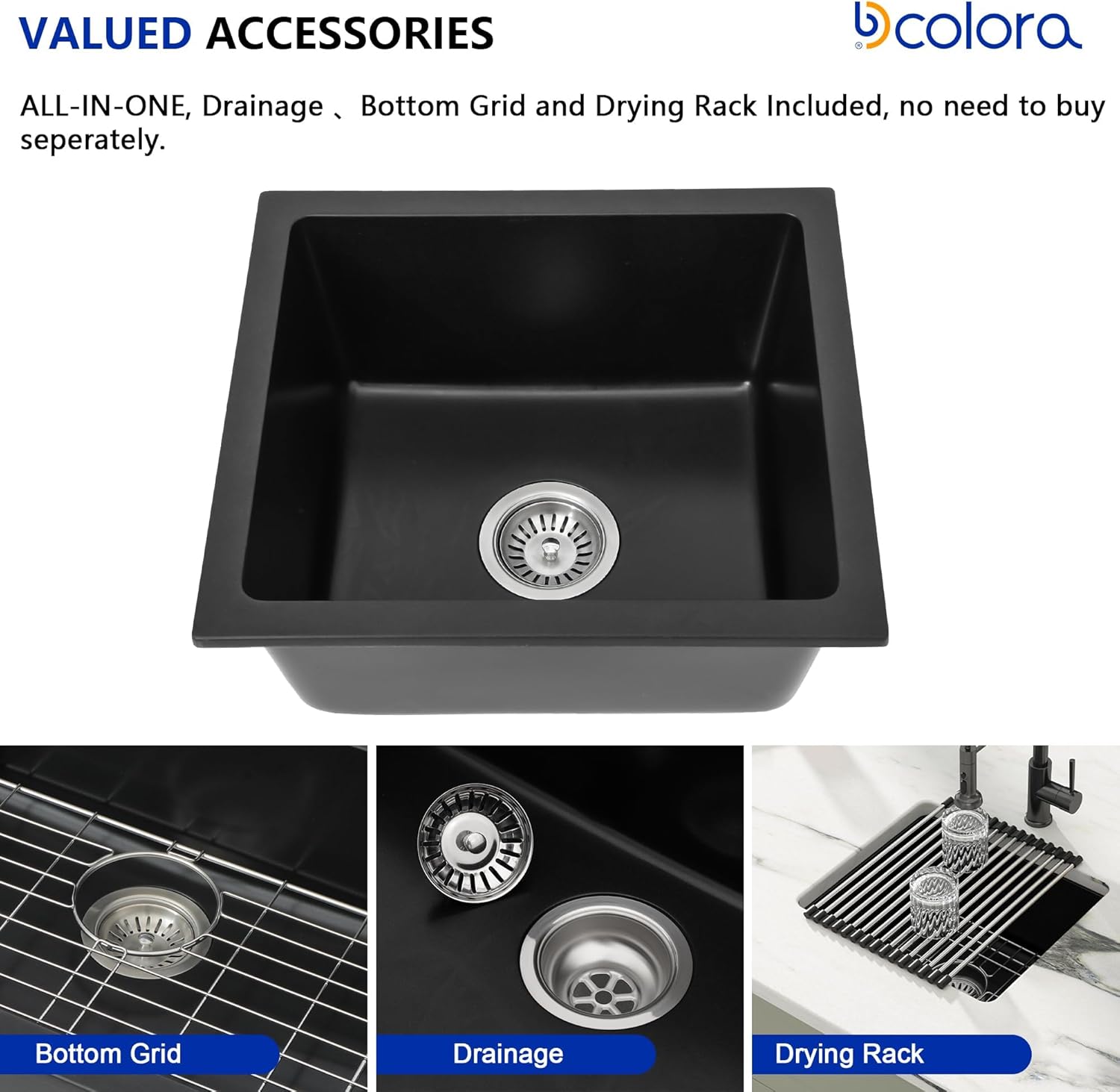 - Aesthetic Versatility--This 18 Inch Undermount Quartz Composite Bar Sink not only offers remarkable durability but also boasts an eye-catching appearance. Its consistent color and texture make it a perfect match for a wide range of kitchen styles and decor.