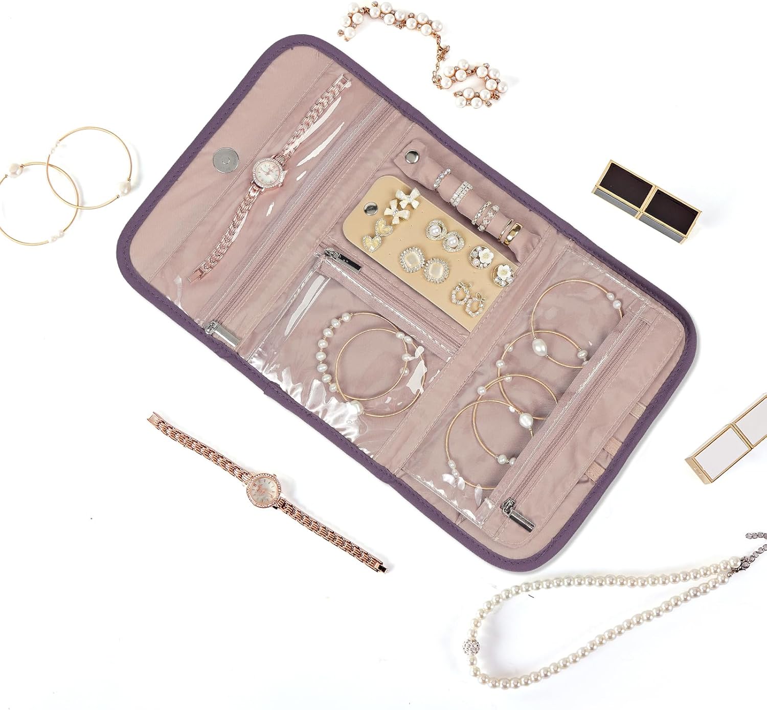 - PRACTICAL: Each area has a protective design to prevent your jewelry from falling out of the bag. In addition, there are multiple universal zipper pockets to store anything you need