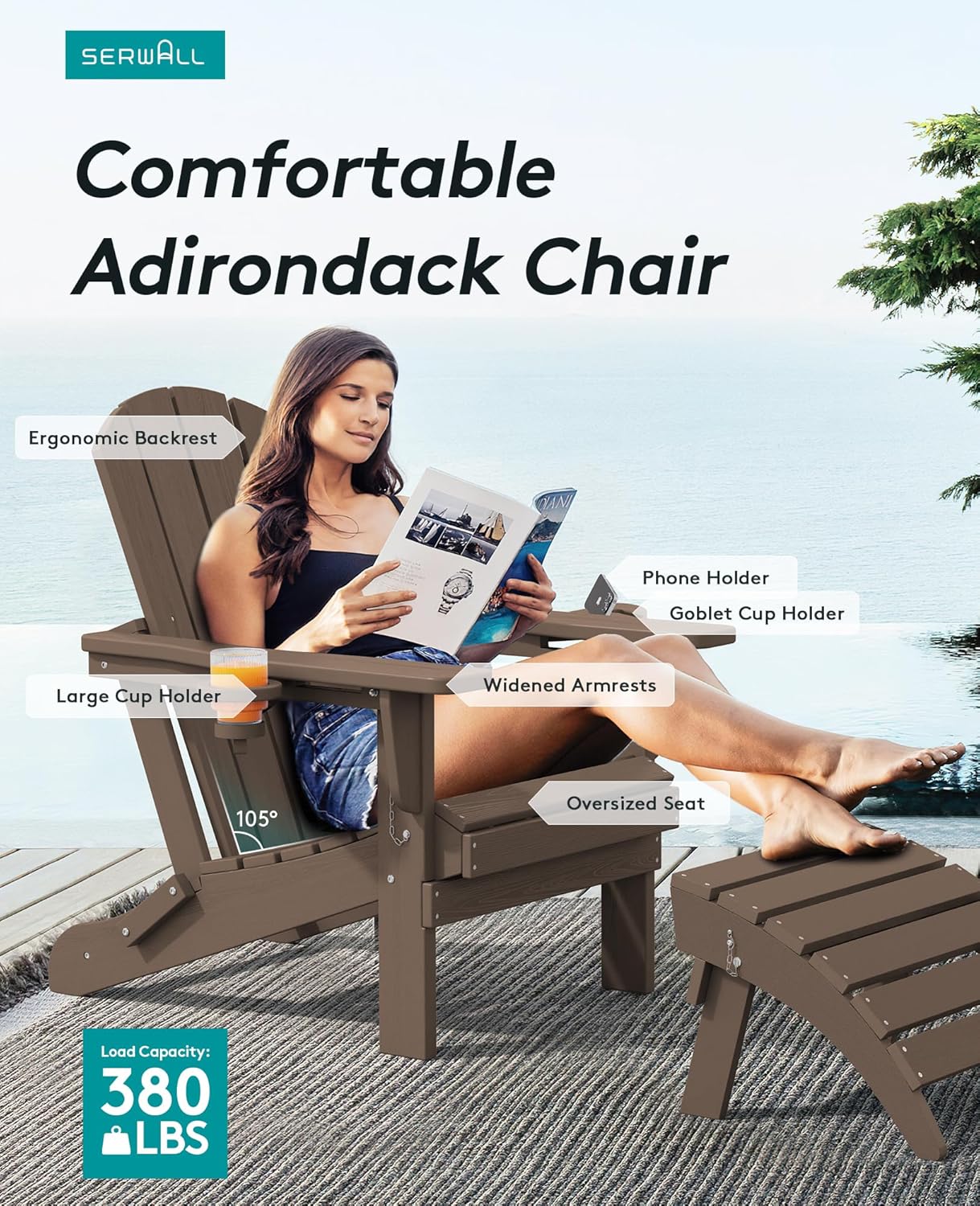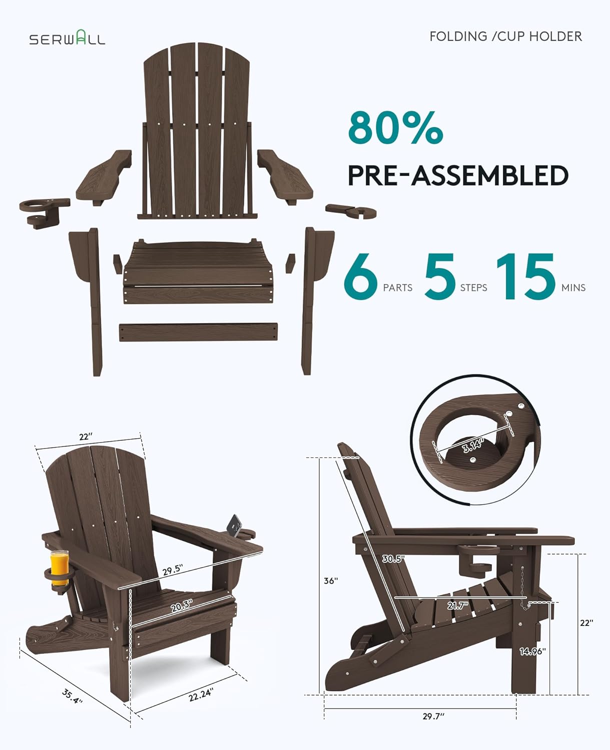 - Folding Design: Are you still struggling with the size of adirondack chair? This adirondack chair can be stored away easily. Buy SERWALL folding adirondack chairs to save space in your home!