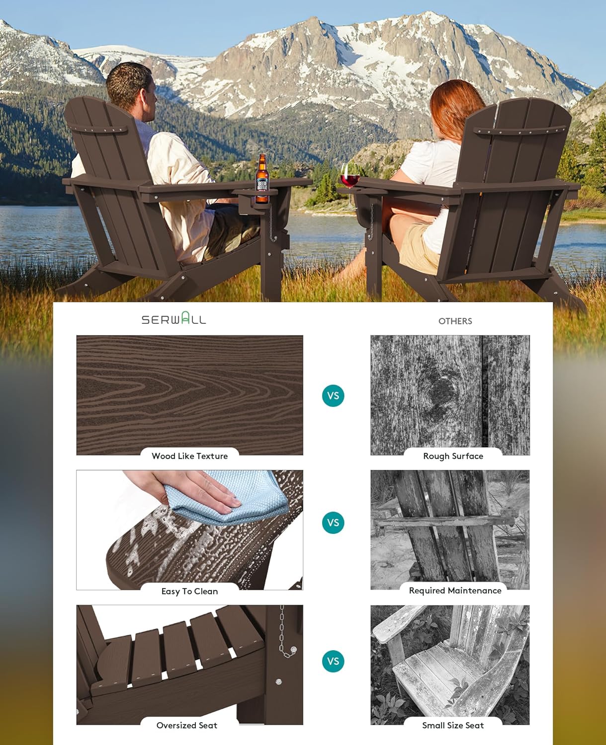 SERWALL Adirondack Chair with Cup Holders - Composite Adirondack Chairs HDPE Outdoor Chairs All Weather Use- Coffee