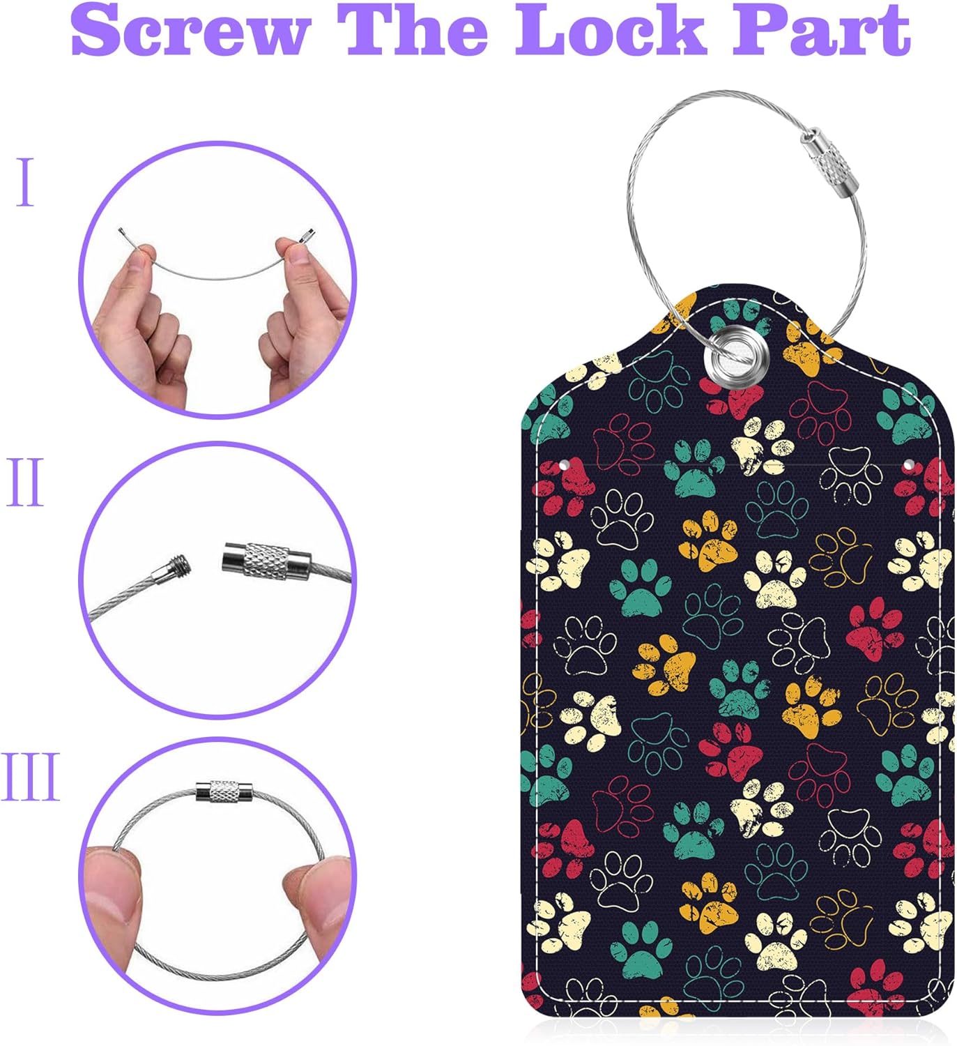 Luggage Tags for Suitcase Cute Cat Dog Paws 2 PCS Leather Travel Cruise Luggage Tag with Stainless Steel Loop Name ID Label Privacy Cover for Women Men Travel Bag Labels Set