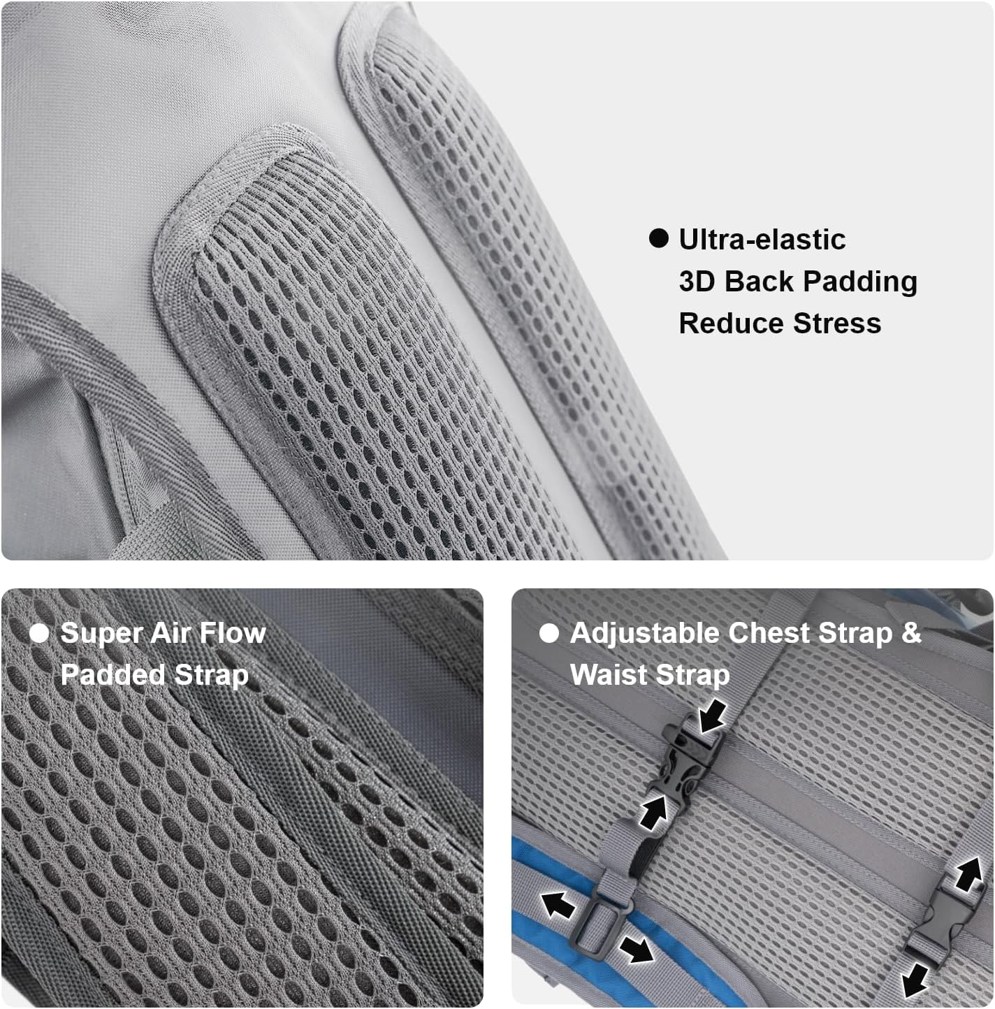 - HIKING/CYCLING/RUNNING/SKIING WITH EASE: This 2 lbs lightweight water backpack features an ultra-elastic 3D breathable padded back, adjustable chest and waist straps to provide comfort and stability for all body sizes. This day pack has got you covered for all your adventures.