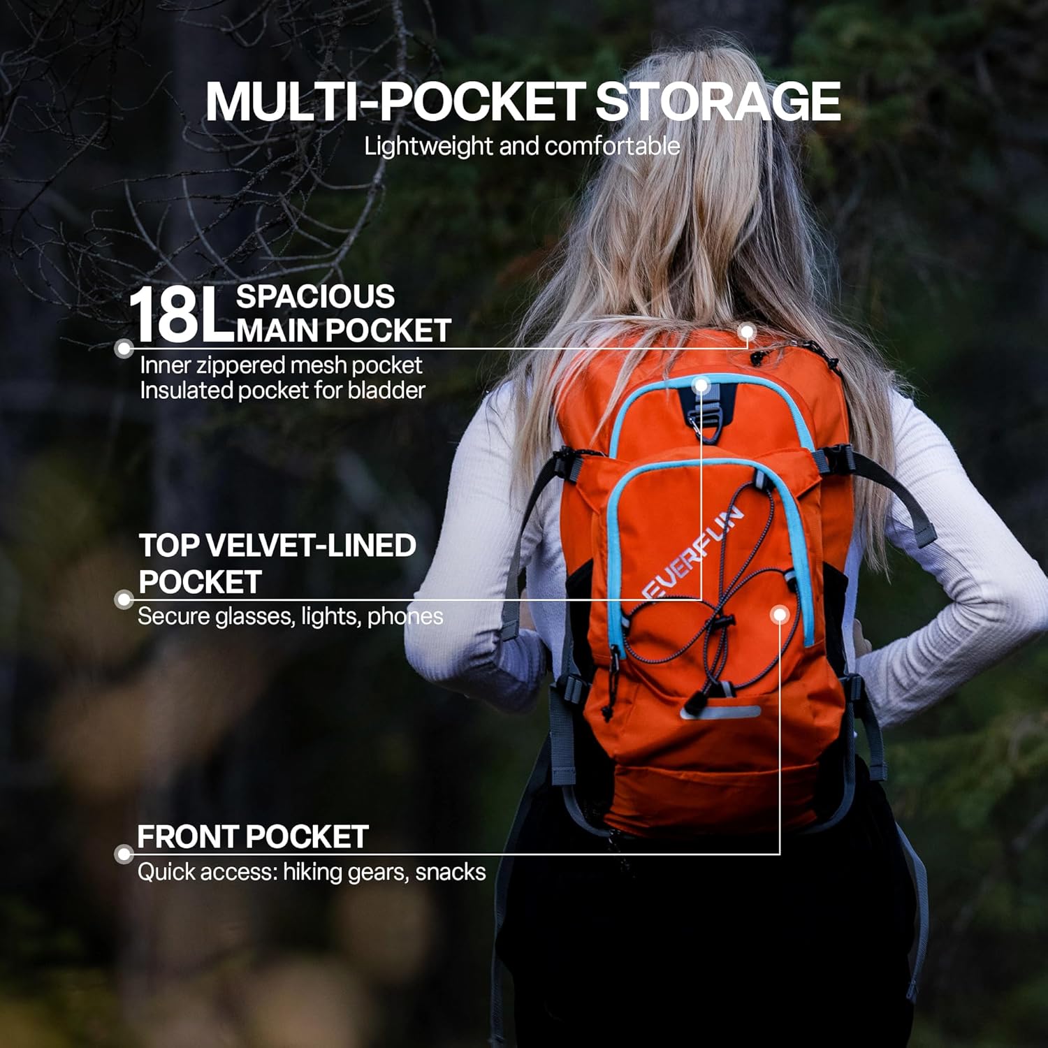 Everfun Hydration Backpack 18L with Water Bladder 2L/3L Hiking Water Backpack Women Men Hydration Pack Insulated Lightweight Day Hydropack with Storage for Hiking, Biking, Running, Festival