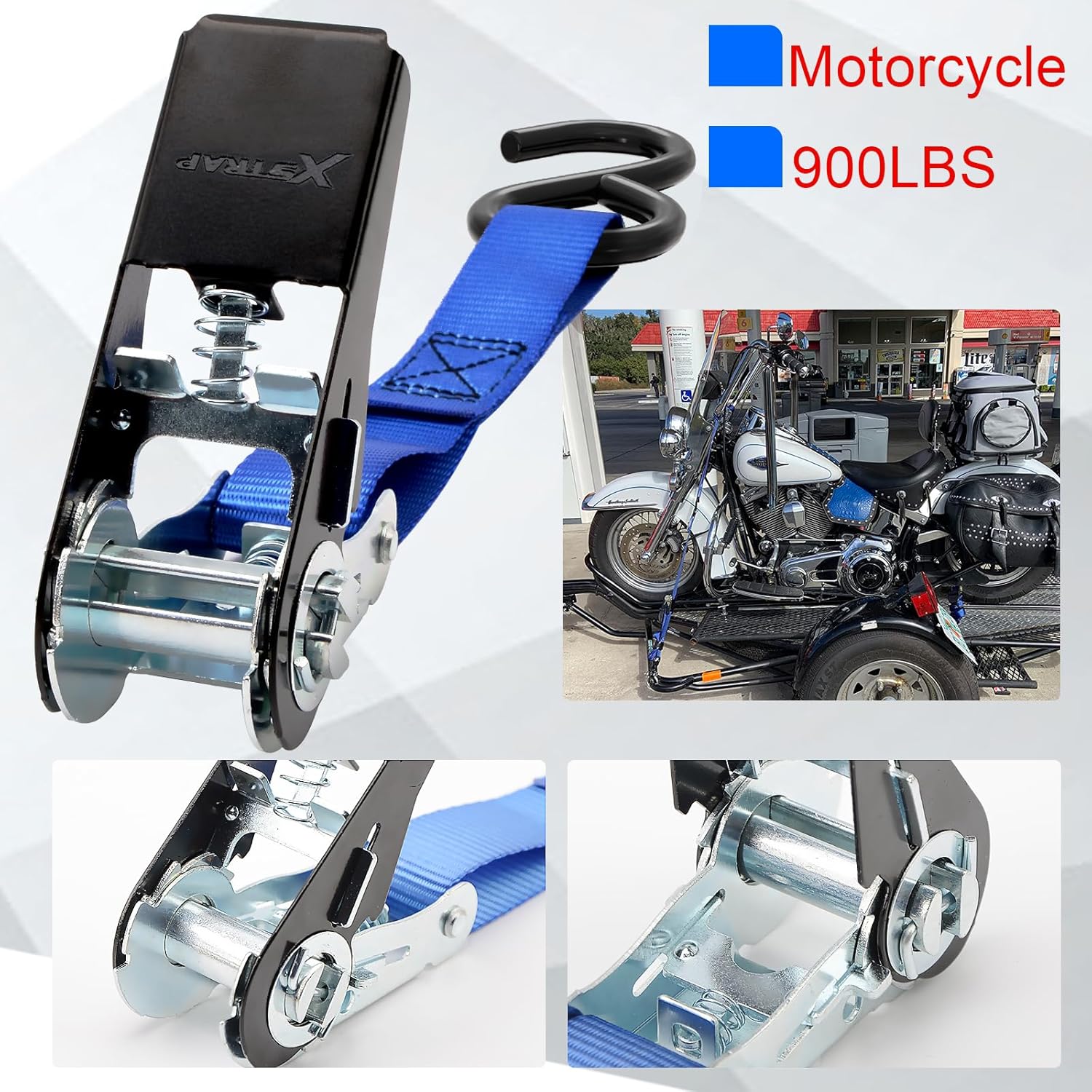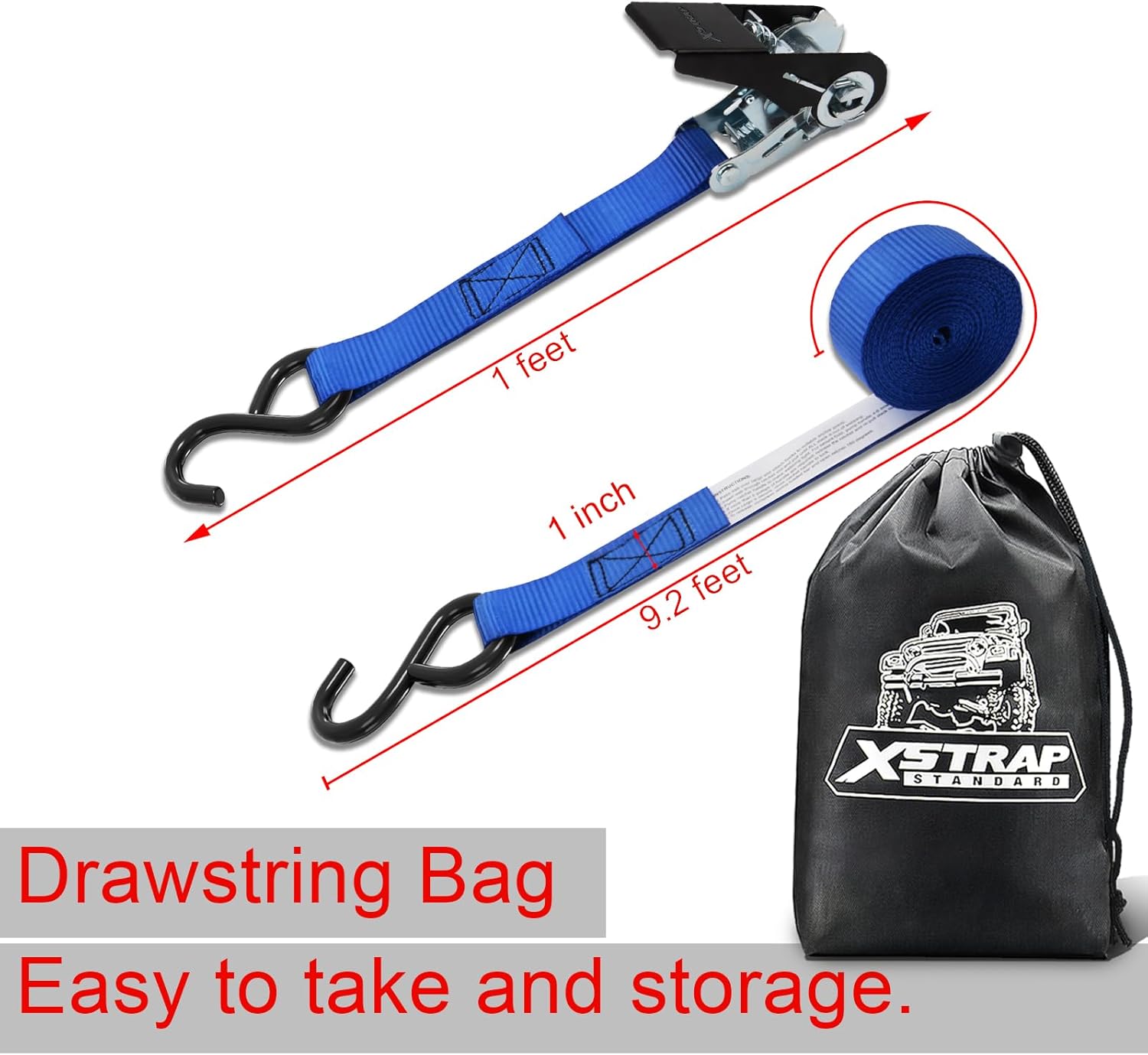 XSTRAP STANDARD Ratchet Tie Down Straps 8PK 1'' x 10 ft - 900 LB Break Strength Cargo Straps for Moving Appliances, Lawn Equipment, Motorcycle (Blue)
