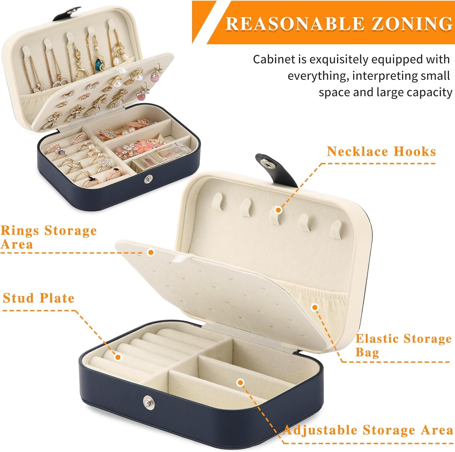 Travel Jewelry Box, PU leather Small Jewelry Organizer For Female Girls, double layer portable mini travel case for storing earrings, rings, necklaces.(dark blue)