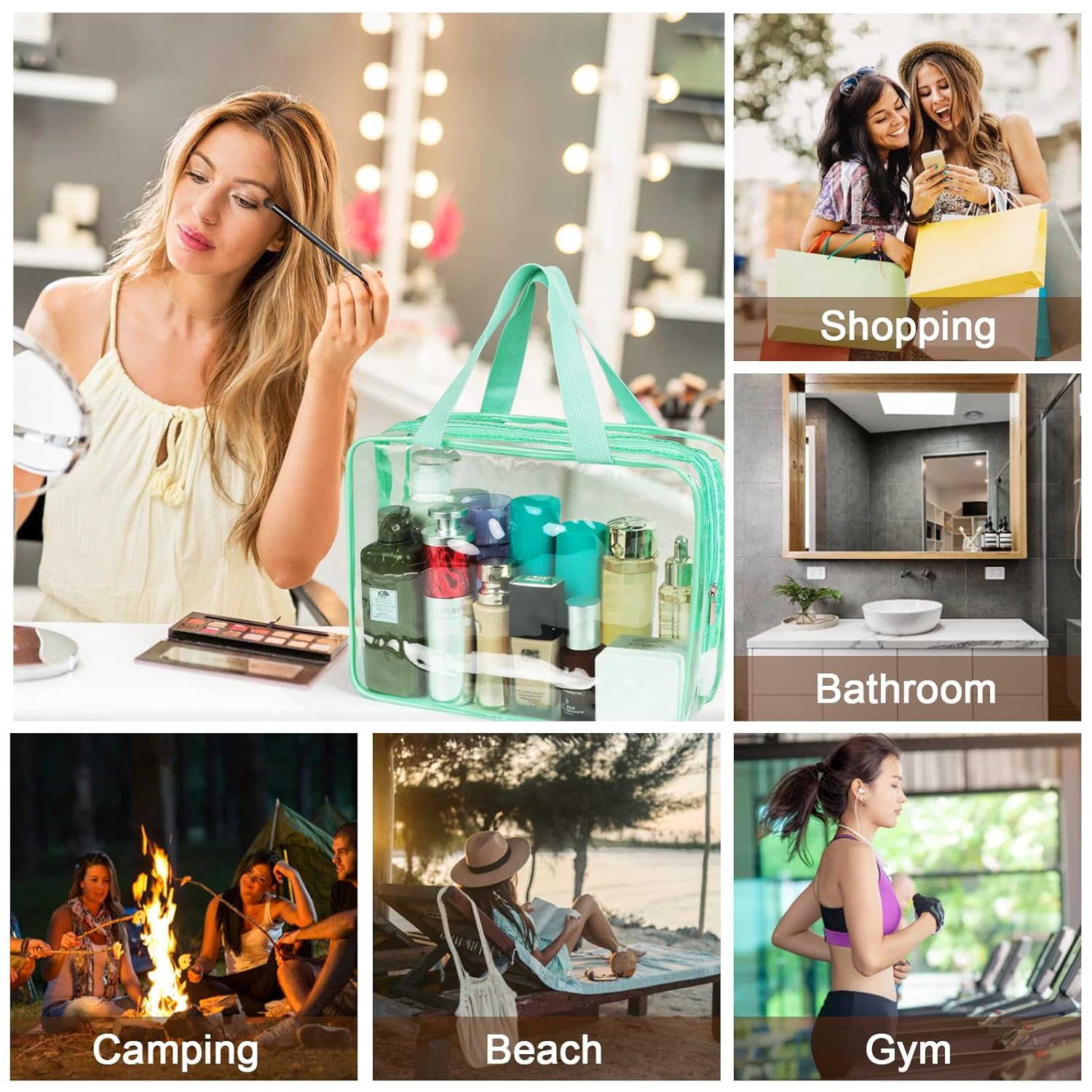 APREUTY Clear Makeup Bags, TSA Approved 6 Pcs Cosmetic Makeup Bags Set Clear PVC with Zipper Handle Portable Travel Luggage Pouch Airport Airline Vacation Organization (Mint Green)