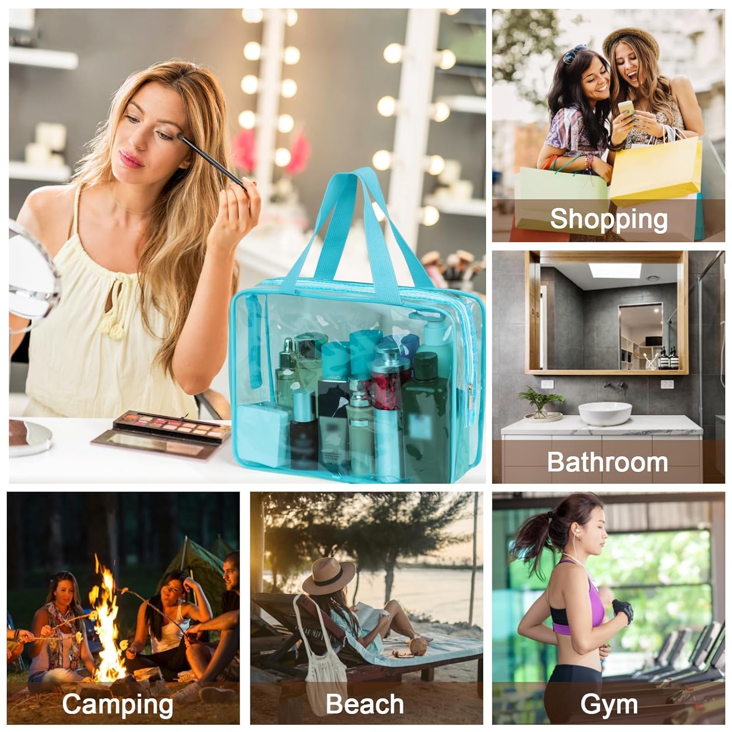 APREUTY Clear Makeup Bags, TSA Approved 6 Pcs Cosmetic Makeup Bags Set Clear PVC with Zipper Handle Portable Travel Luggage Pouch Airport Airline Vacation Organization(Light Blue)