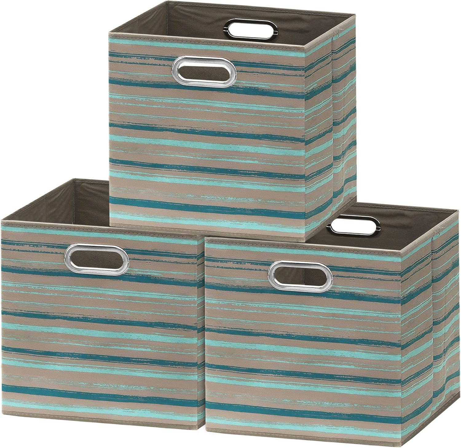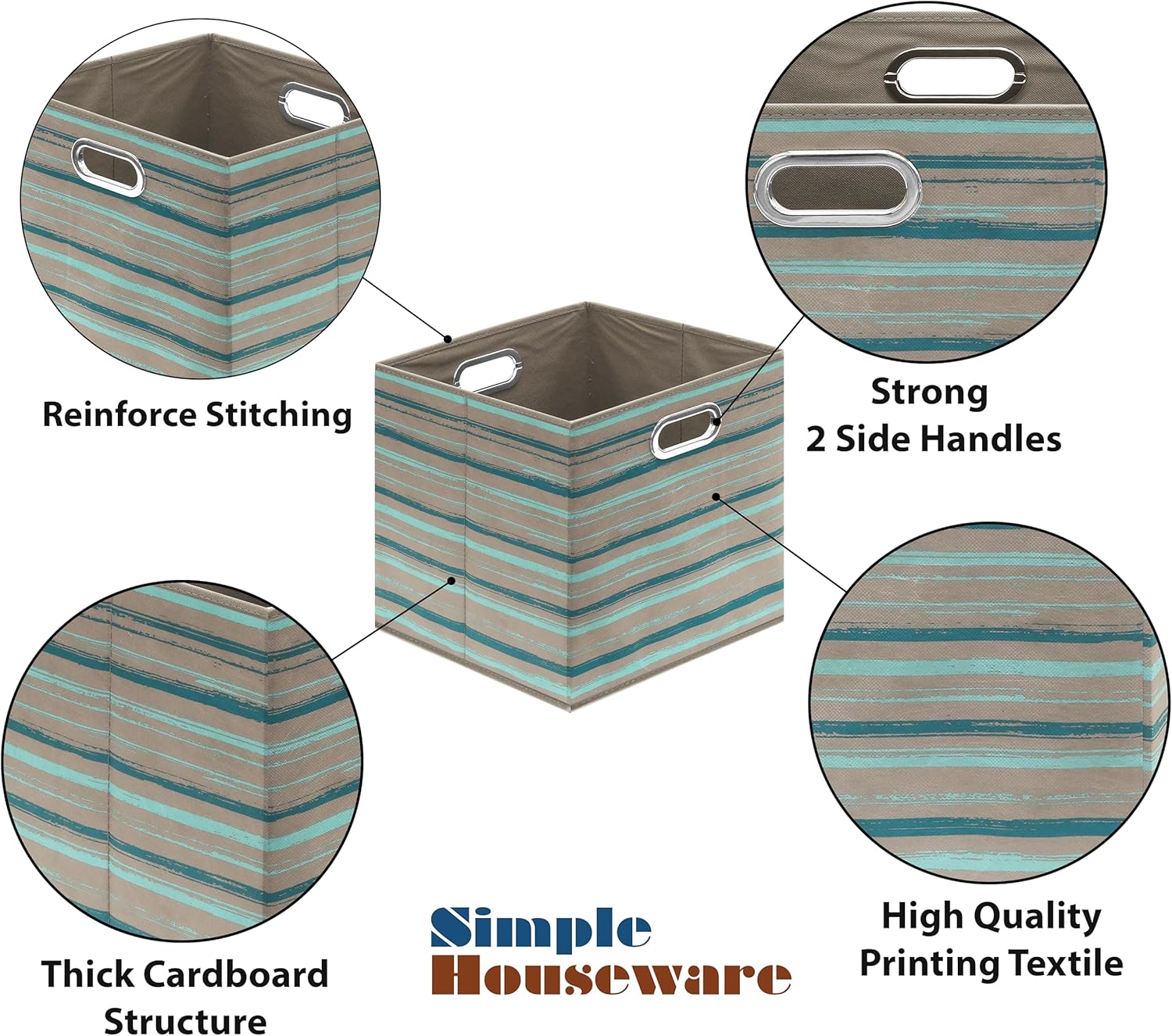 SIMPLE HOUSEWARE 13-Inch Collapsible Fabric Cube Storage Bin with Handles, Printed Design, 3 Pack, Green